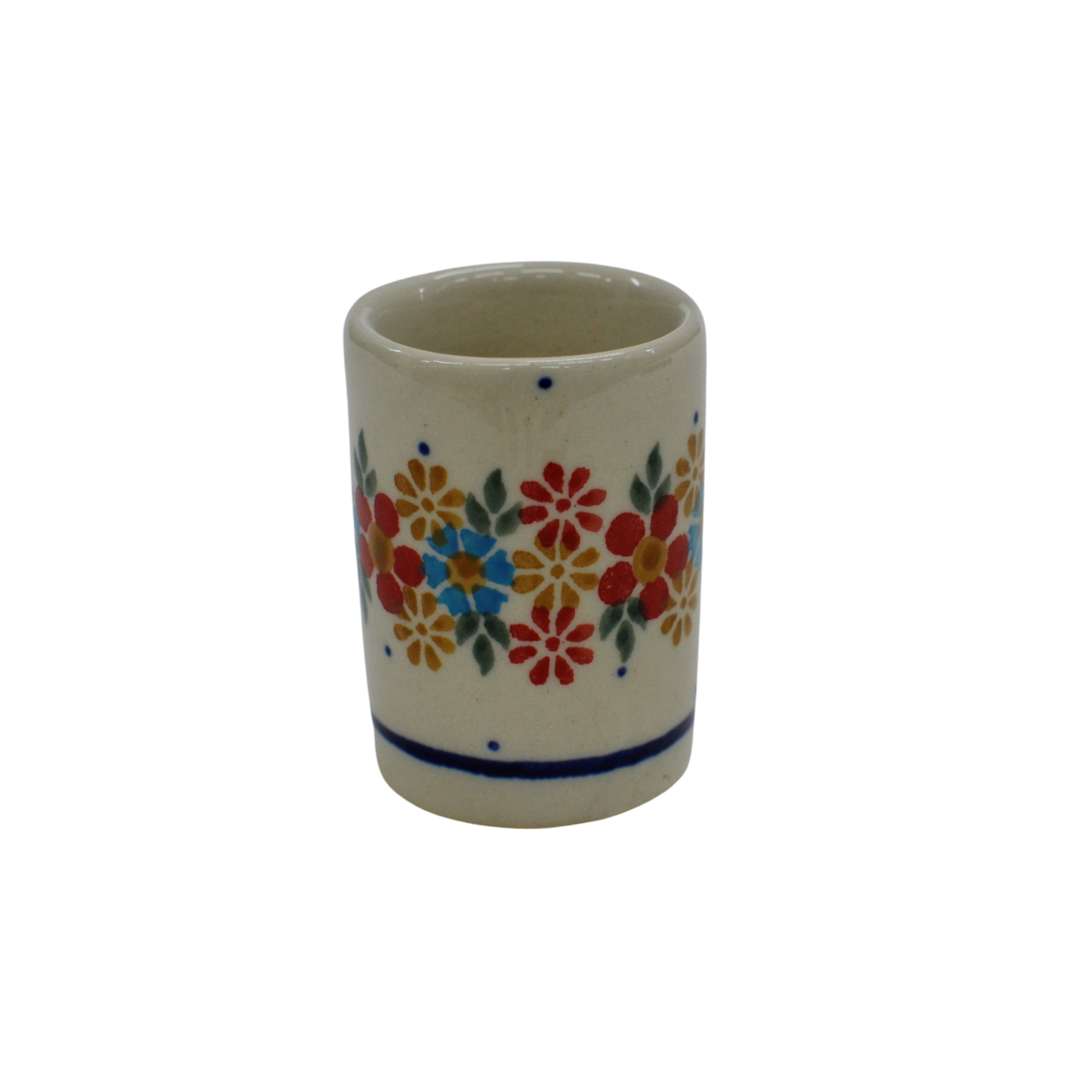 Kieliszek ceramiczny duży o pojemności 75 ml, do wódki i likieru, wyprodukowany w Bolesławcu, w zakładzie ceramiki artystycznej. Ceramiczny kieliszek. lekko rozszerzany górą, kieliszek na mocne trunki oraz nalewki.