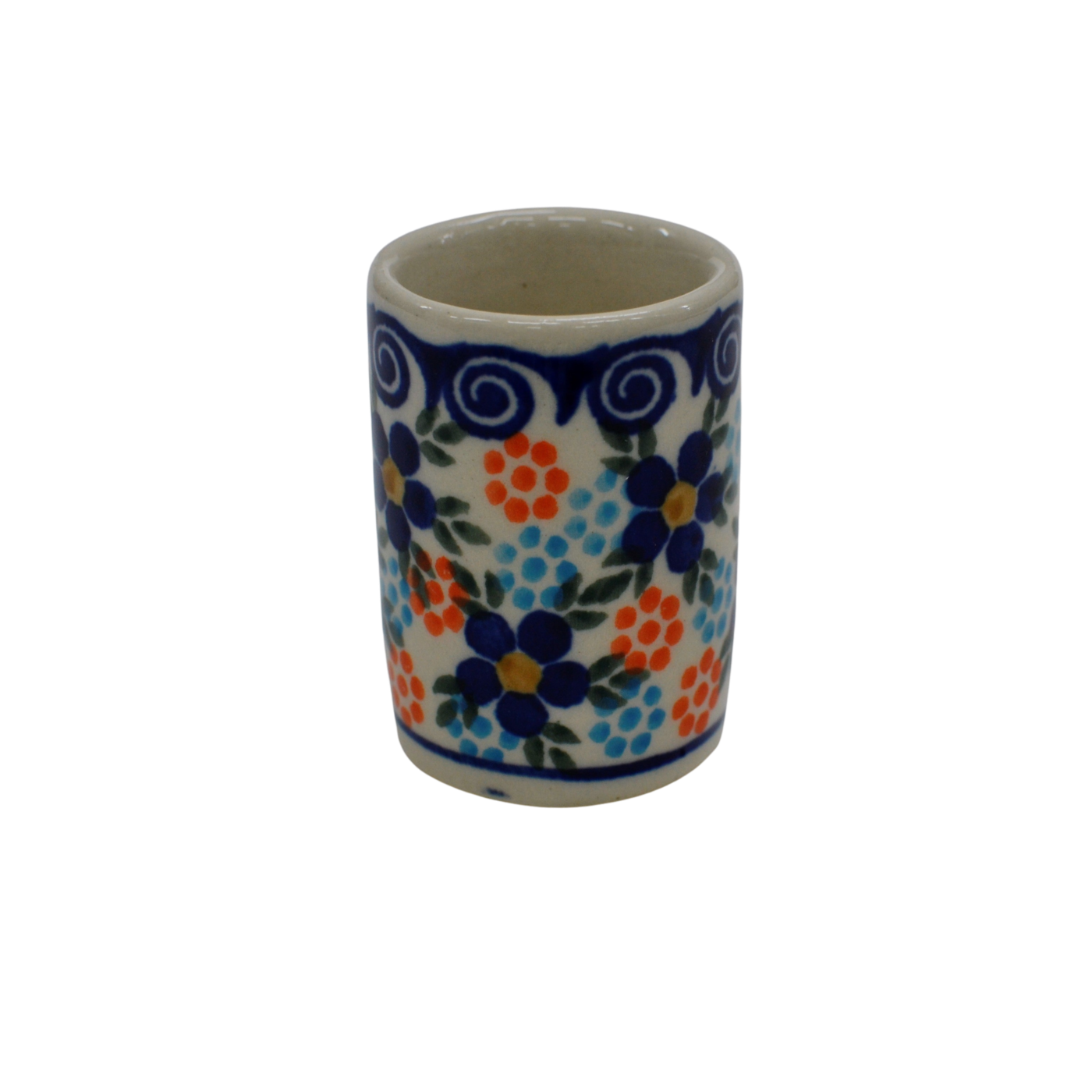 Kieliszek ceramiczny duży o pojemności 75 ml, do wódki i likieru, wyprodukowany w Bolesławcu, w zakładzie ceramiki artystycznej. Ceramiczny kieliszek. lekko rozszerzany górą, kieliszek na mocne trunki oraz nalewki.