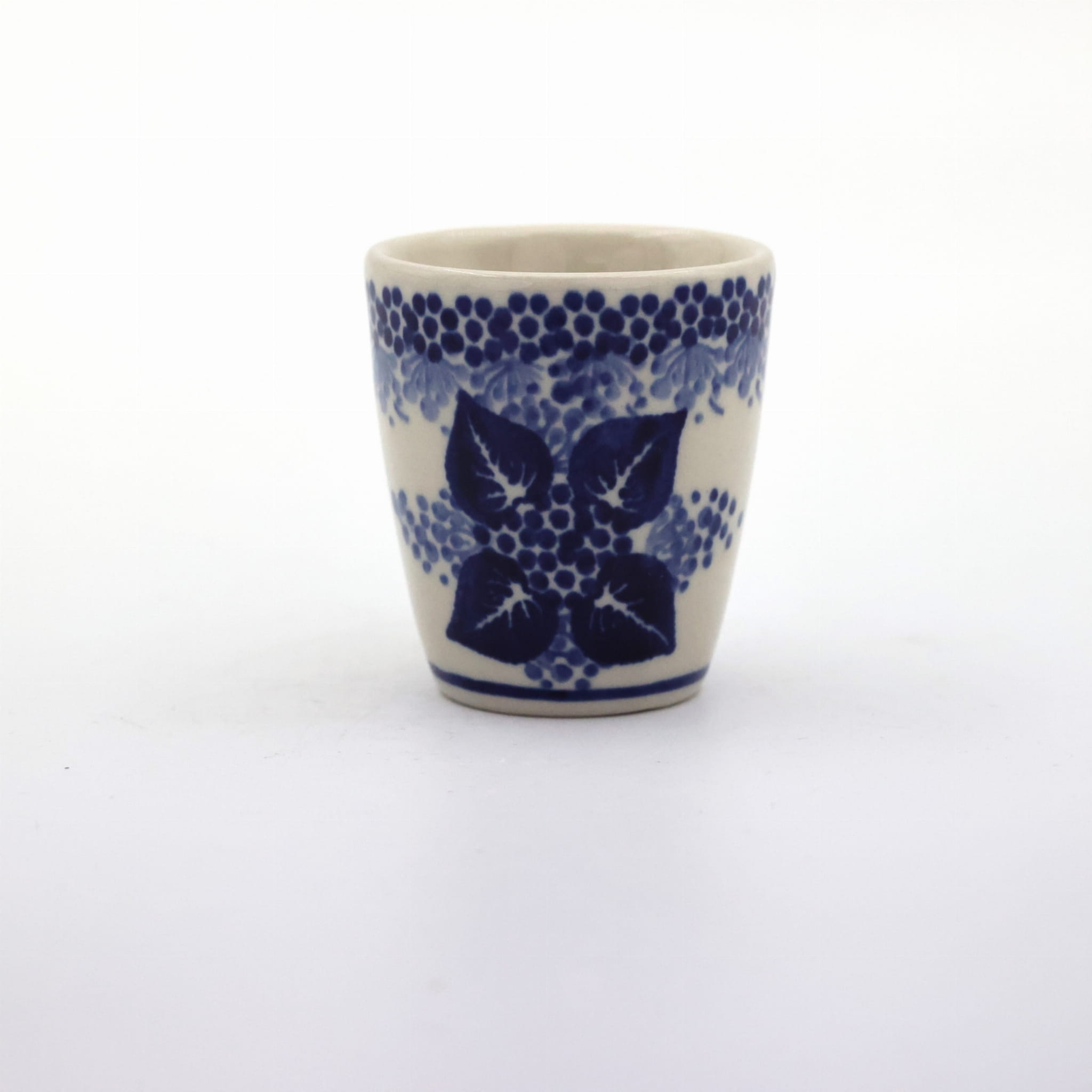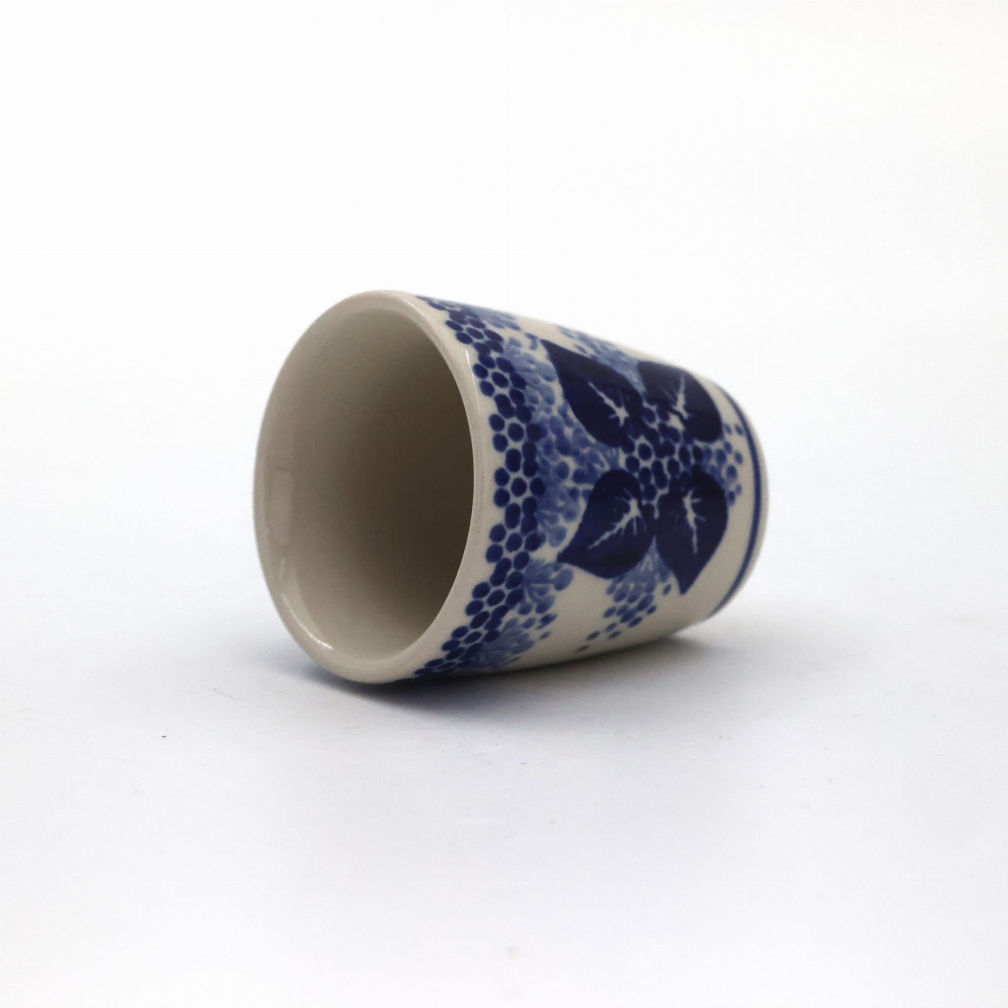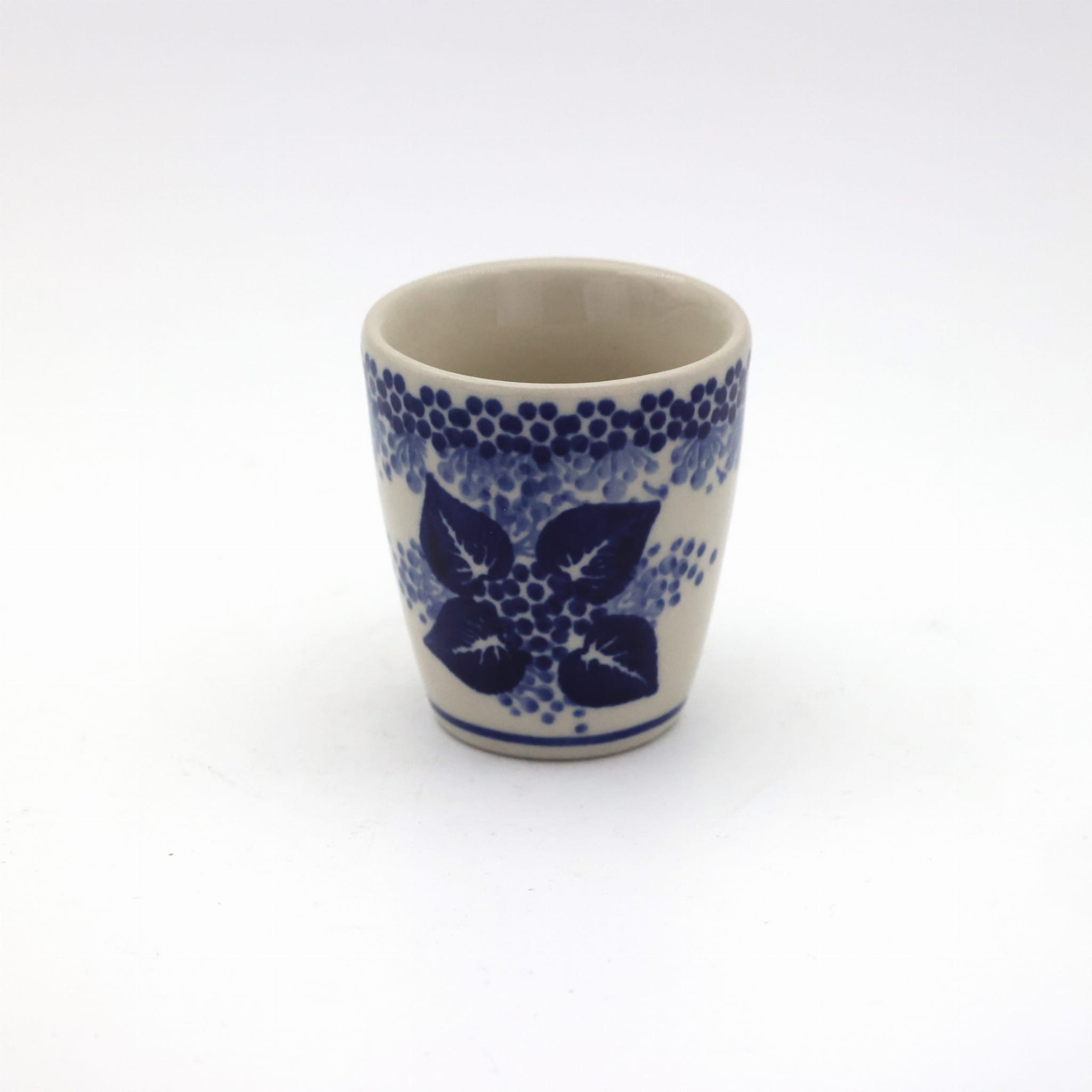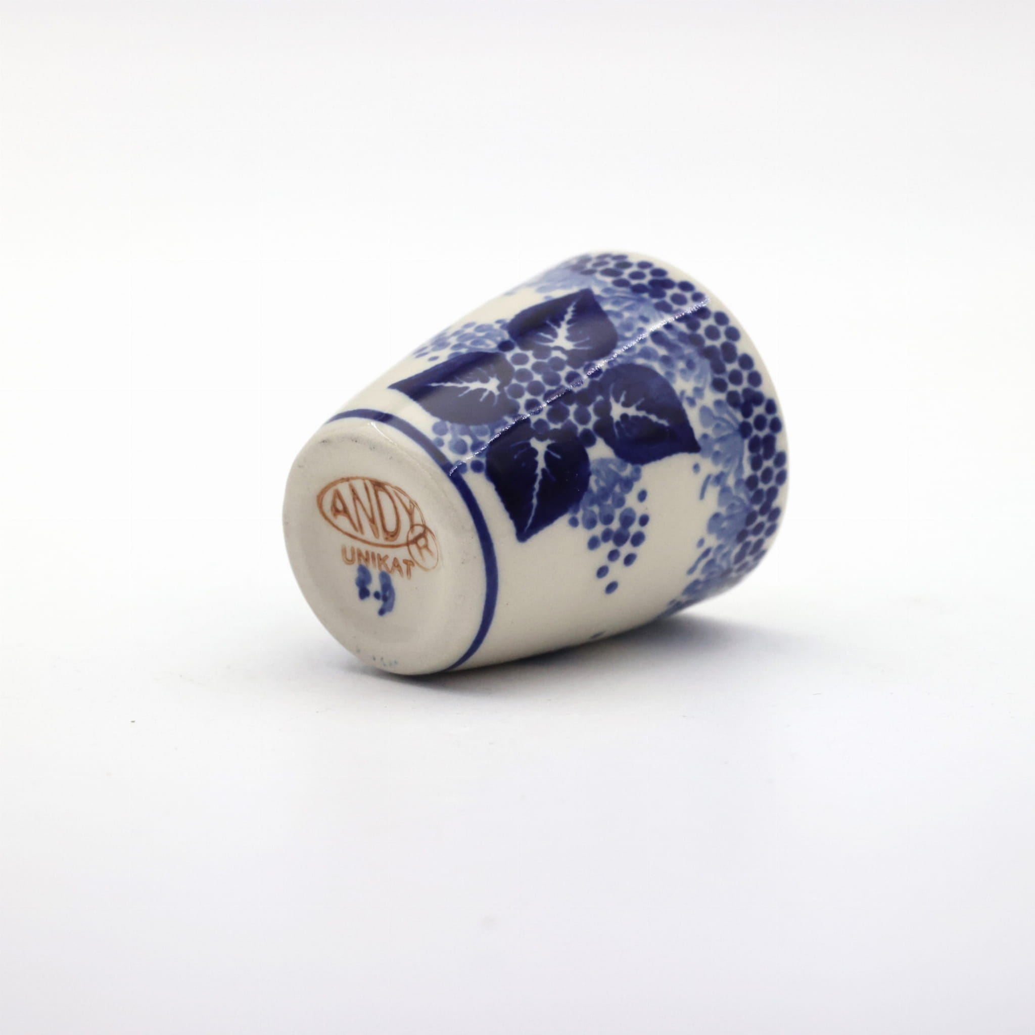 Kieliszek ceramiczny duży o pojemności 75 ml, do wódki i likieru, wyprodukowany w Bolesławcu. Lekko rozszerzany górą, kieliszek na mocne trunki.