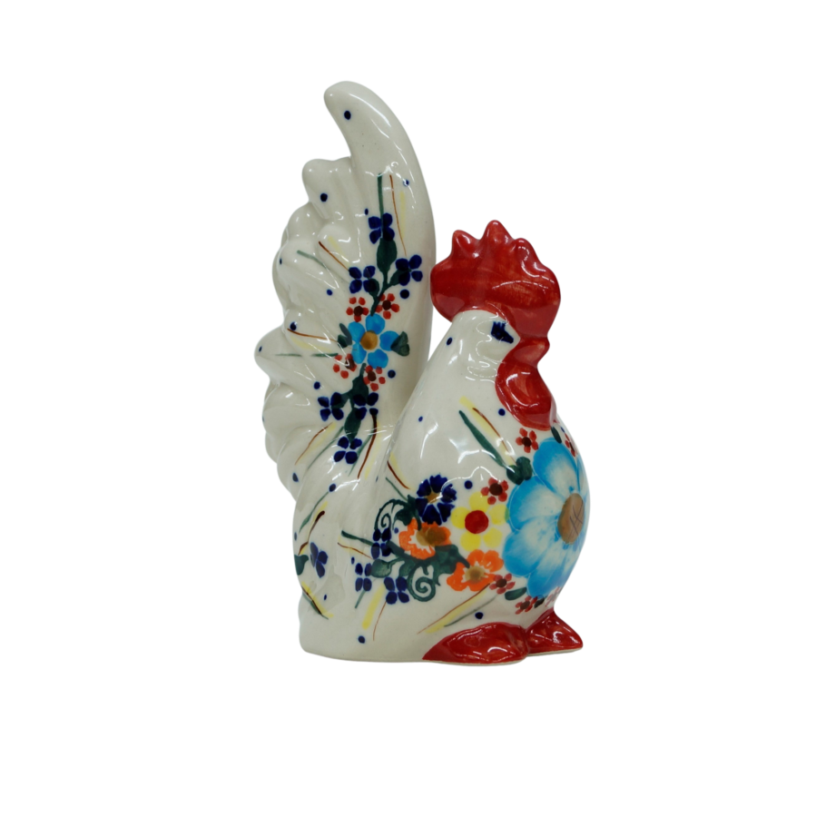 Przedstawiamy hit wiosennych i wielkanocnych dekoracji domu i ogrodów, ceramiczny kogut, figurka przedstawiająca koguta. Figurka ceramiczna jest ręcznie malowana w zakładzie ceramiki bolesławieckiej, ANDY Ceramika.