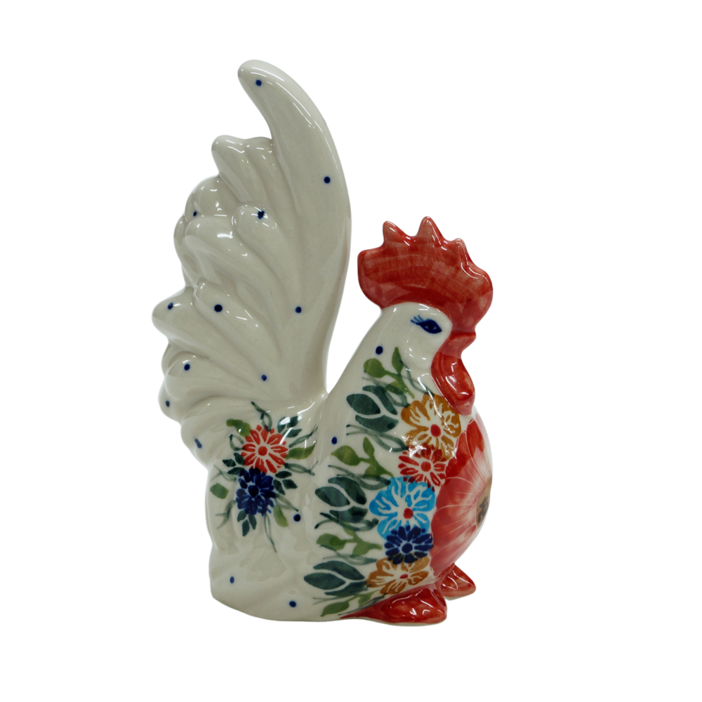 Przedstawiamy hit wiosennych i wielkanocnych dekoracji domu i ogrodów, ceramiczny kogut, figurka przedstawiająca koguta. Figurka ceramiczna jest ręcznie malowana w zakładzie ceramiki bolesławieckiej, ANDY Ceramika.