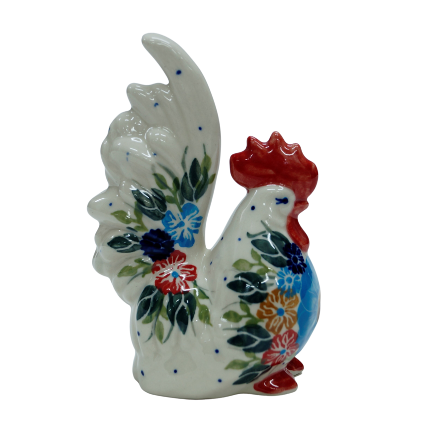 Przedstawiamy hit wiosennych i wielkanocnych dekoracji domu i ogrodów, ceramiczny kogut, figurka przedstawiająca koguta. Figurka ceramiczna jest ręcznie malowana w zakładzie ceramiki bolesławieckiej, ANDY Ceramika.