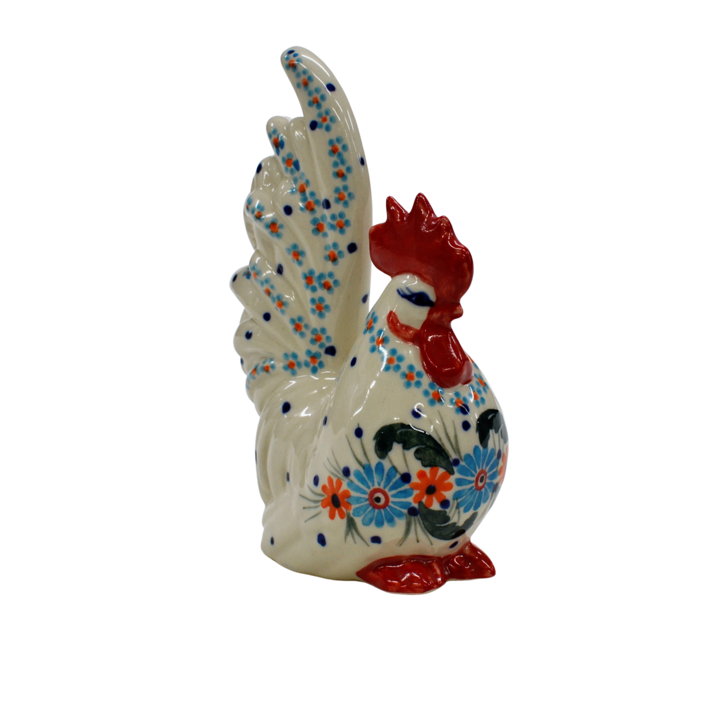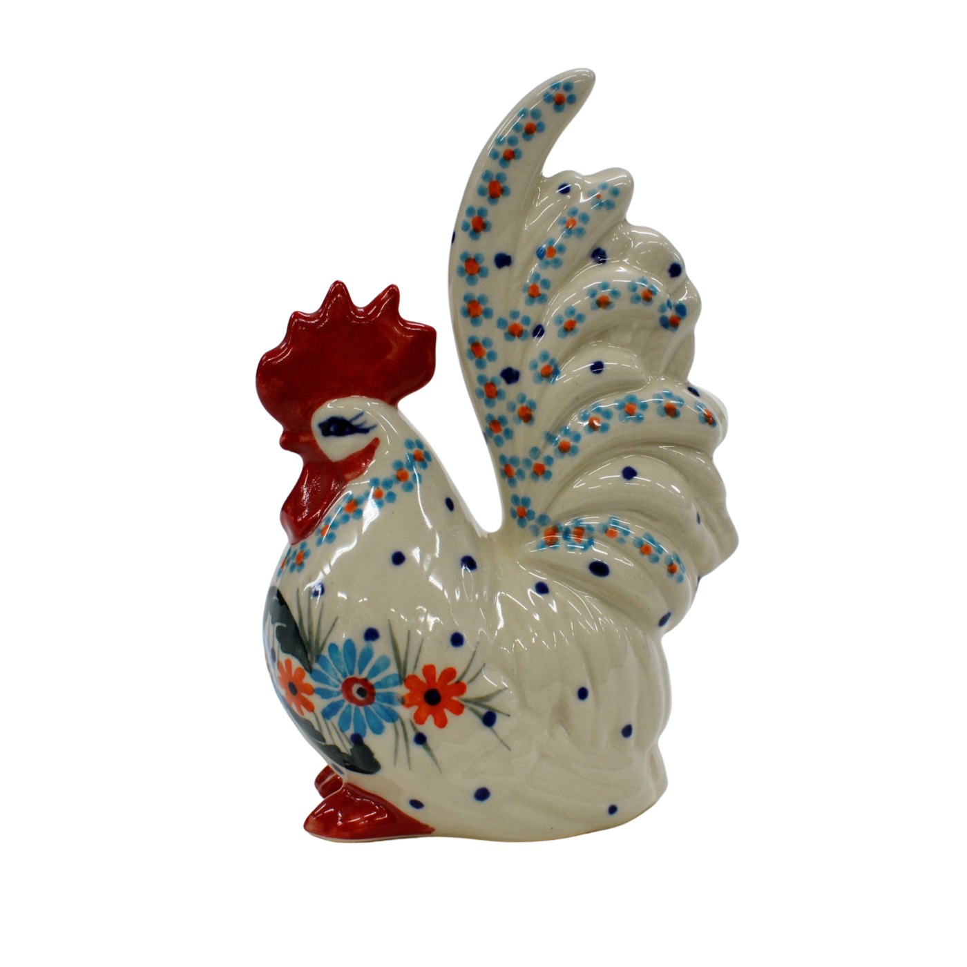 Przedstawiamy hit wiosennych i wielkanocnych dekoracji domu i ogrodów, ceramiczny kogut, figurka przedstawiająca koguta. Figurka ceramiczna jest ręcznie malowana w zakładzie ceramiki bolesławieckiej, ANDY Ceramika.