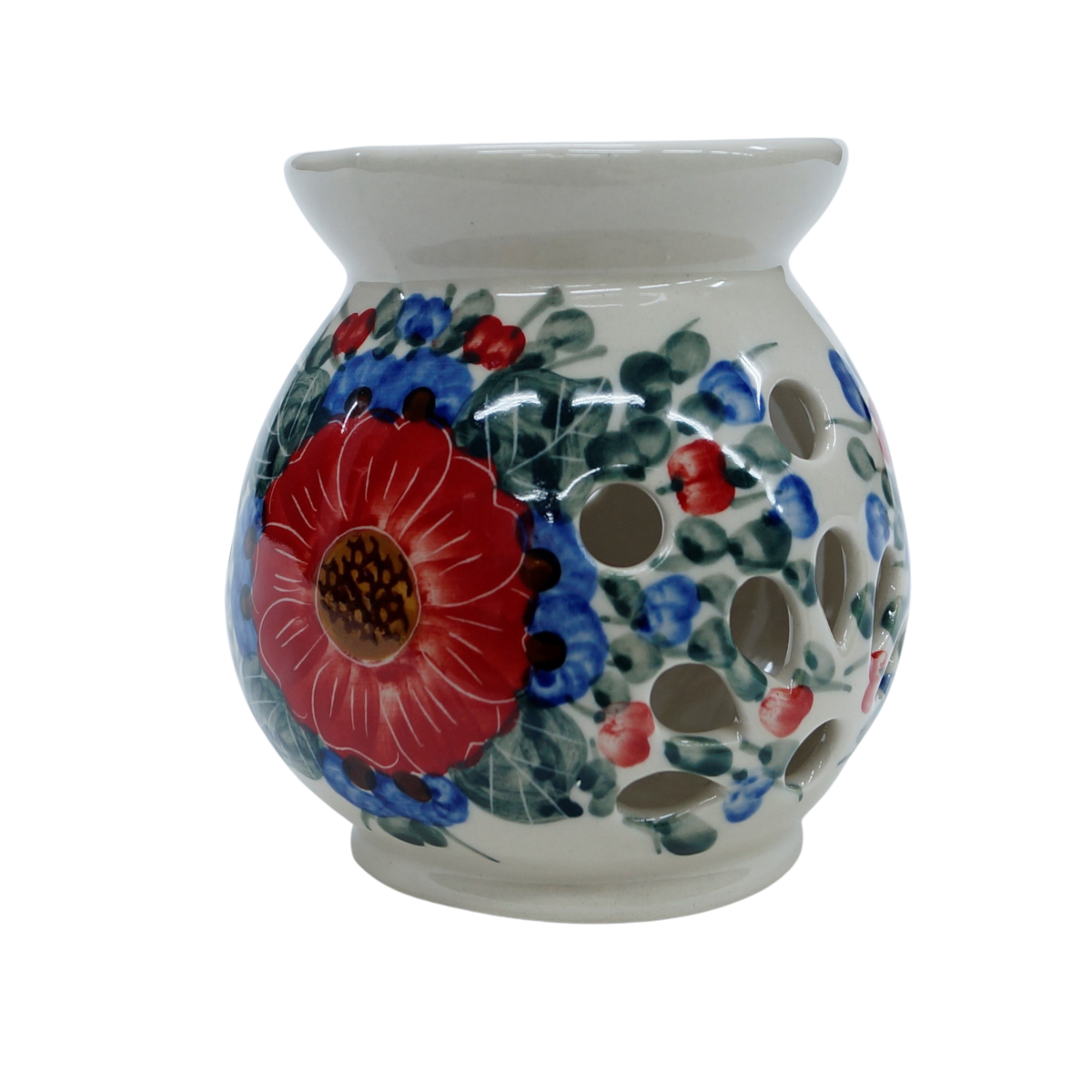 Kominek zapachowy, zwany również witrażowym, (lampa do wosków i olejków), wykonany z najwyższej jakości ceramiki. Oryginalny i niepowtarzalny design, unikatowe dekoracje, utrzymany w tematyce folkowej ożywią każde pomieszczenie i nadadzą szczególnego charakteru.