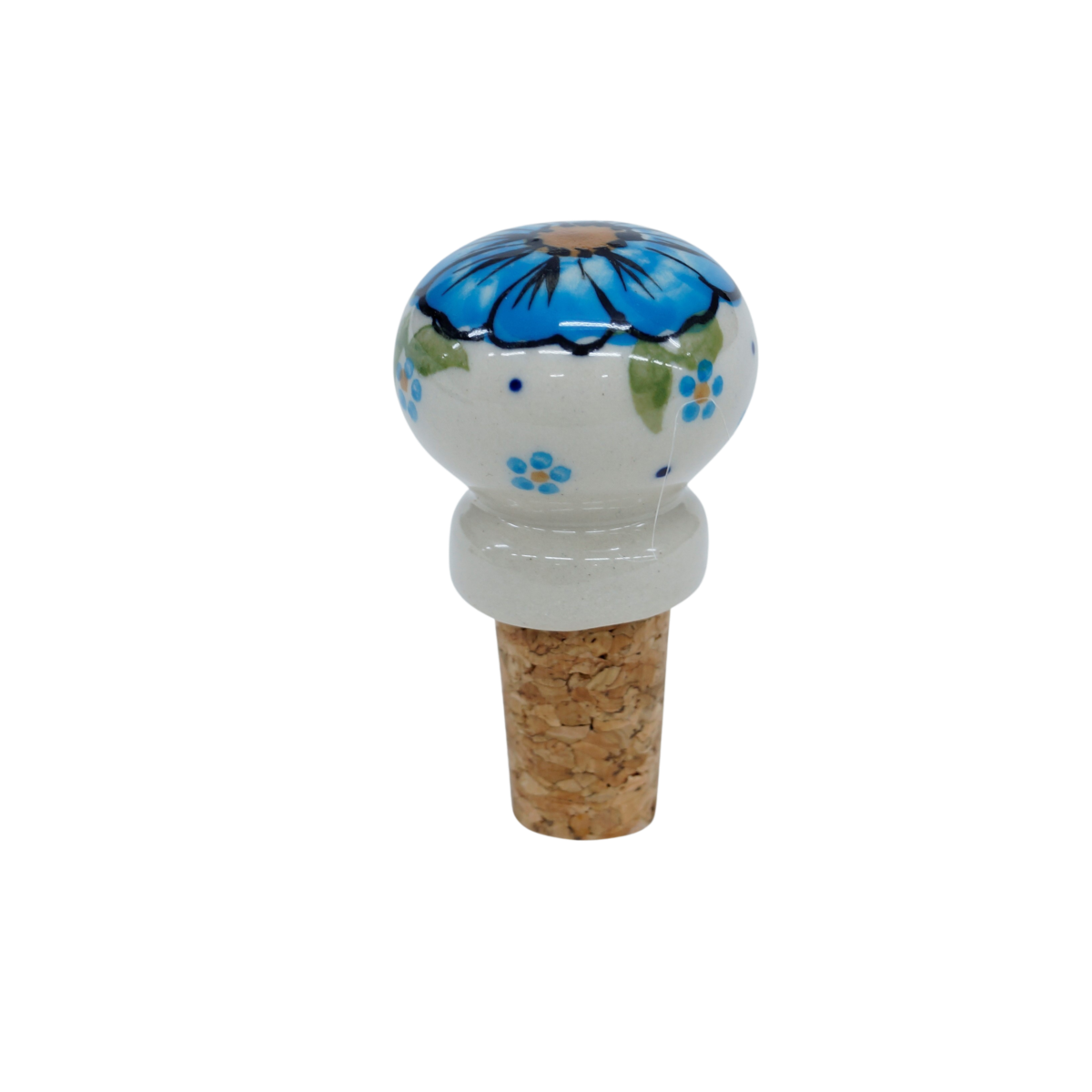 Ceramiczny korek do butelki, oryginalny wyrób ceramiki użytkowej z Bolesławca. Świetnie nadający się korek / zatyczka do butelki wina bądź innych trunków wymagających zamknięcia. Nasze ceramiczne korki do butelki połączone są z naturalnym korkiem z korka aglomerowanego najwyższej jakości i trwałości - prawdziwie naturalny produkt.