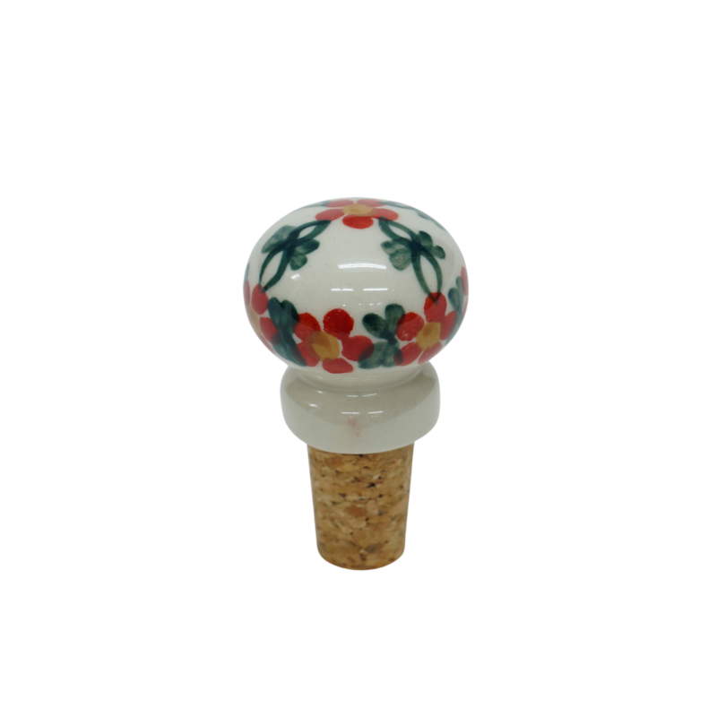 Ceramiczny korek do butelki, oryginalny wyrób ceramiki użytkowej z Bolesławca. Świetnie nadający się korek / zatyczka do butelki wina bądź innych trunków wymagających zamknięcia. Nasze ceramiczne korki do butelki połączone są z naturalnym korkiem z korka aglomerowanego najwyższej jakości i trwałości - prawdziwie naturalny produkt.