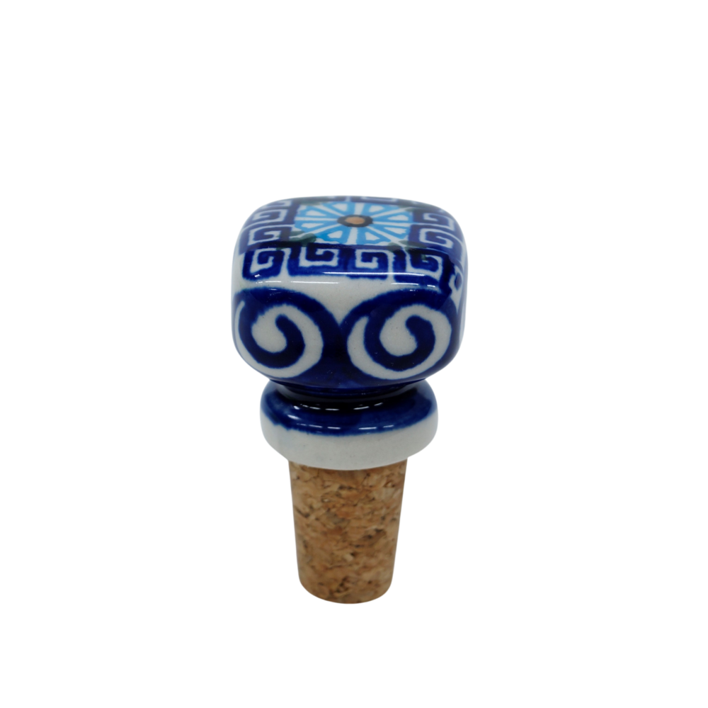 Ceramiczny korek do butelki, oryginalny wyrób ceramiki użytkowej z Bolesławca. Świetnie nadający się korek / zatyczka do butelki wina bądź innych trunków wymagających zamknięcia. Nasze ceramiczne korki do butelki połączone są z naturalnym korkiem z korka aglomerowanego najwyższej jakości i trwałości - prawdziwie naturalny produkt.