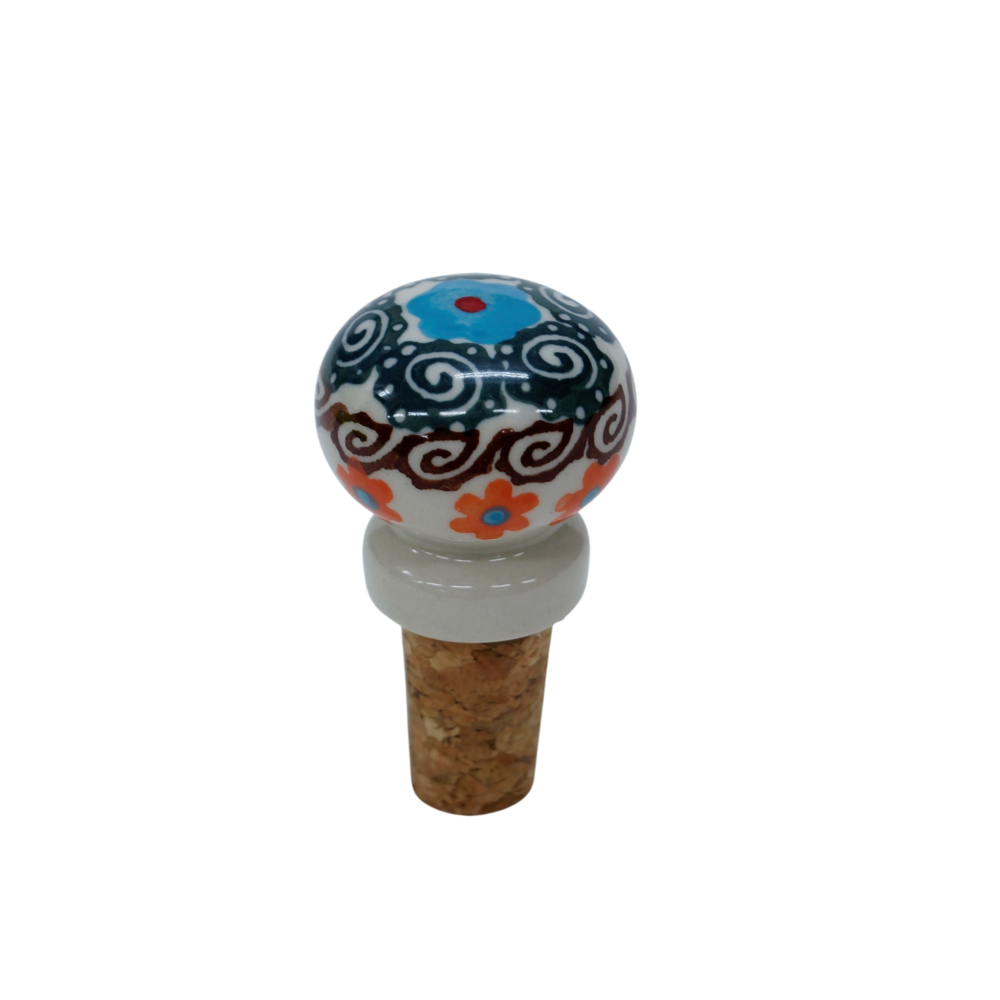Ceramiczny korek do butelki, oryginalny wyrób ceramiki użytkowej z Bolesławca. Świetnie nadający się korek / zatyczka do butelki wina bądź innych trunków wymagających zamknięcia. Nasze ceramiczne korki do butelki połączone są z naturalnym korkiem z korka aglomerowanego najwyższej jakości i trwałości - prawdziwie naturalny produkt.