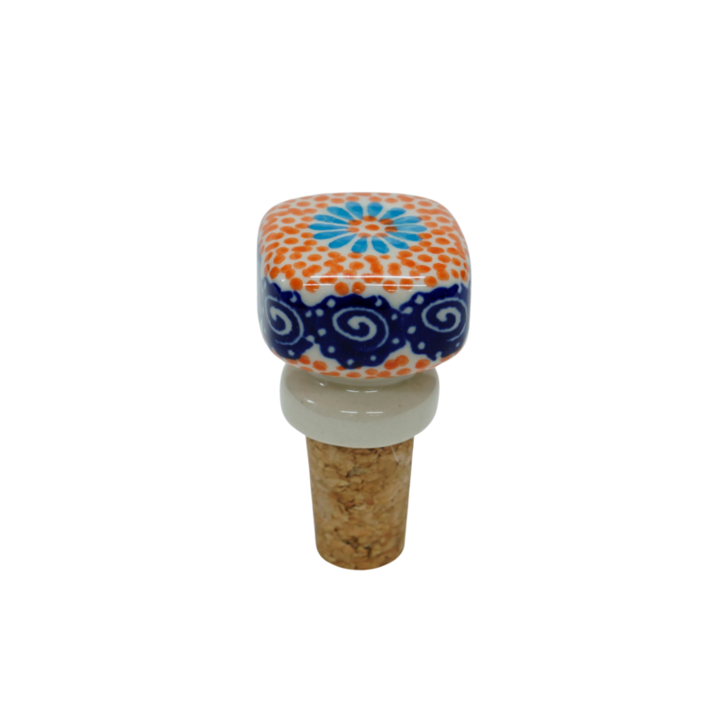 Ceramiczny korek do butelki, oryginalny wyrób ceramiki użytkowej z Bolesławca. Świetnie nadający się korek / zatyczka do butelki wina bądź innych trunków wymagających zamknięcia. Nasze ceramiczne korki do butelki połączone są z naturalnym korkiem z korka aglomerowanego najwyższej jakości i trwałości - prawdziwie naturalny produkt.