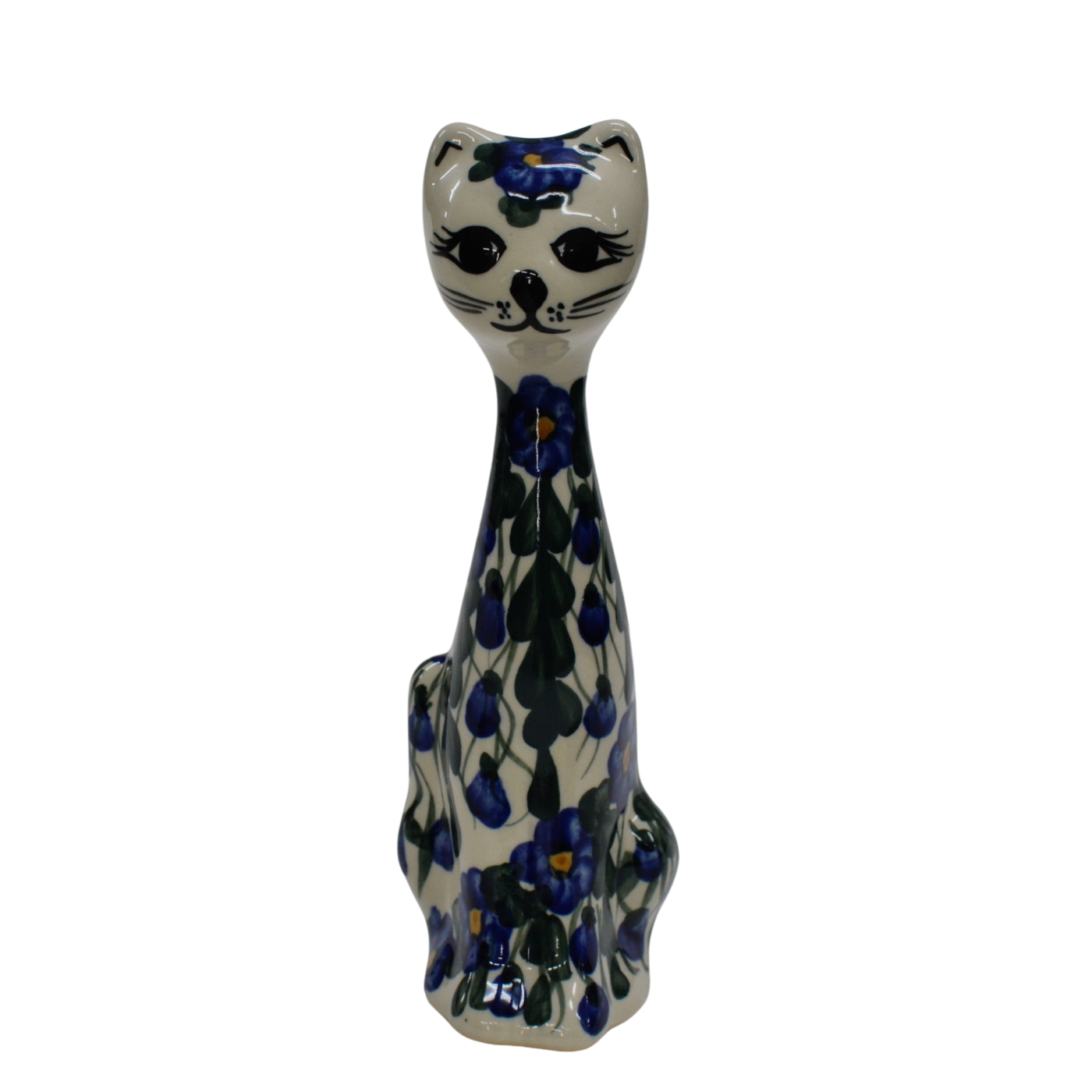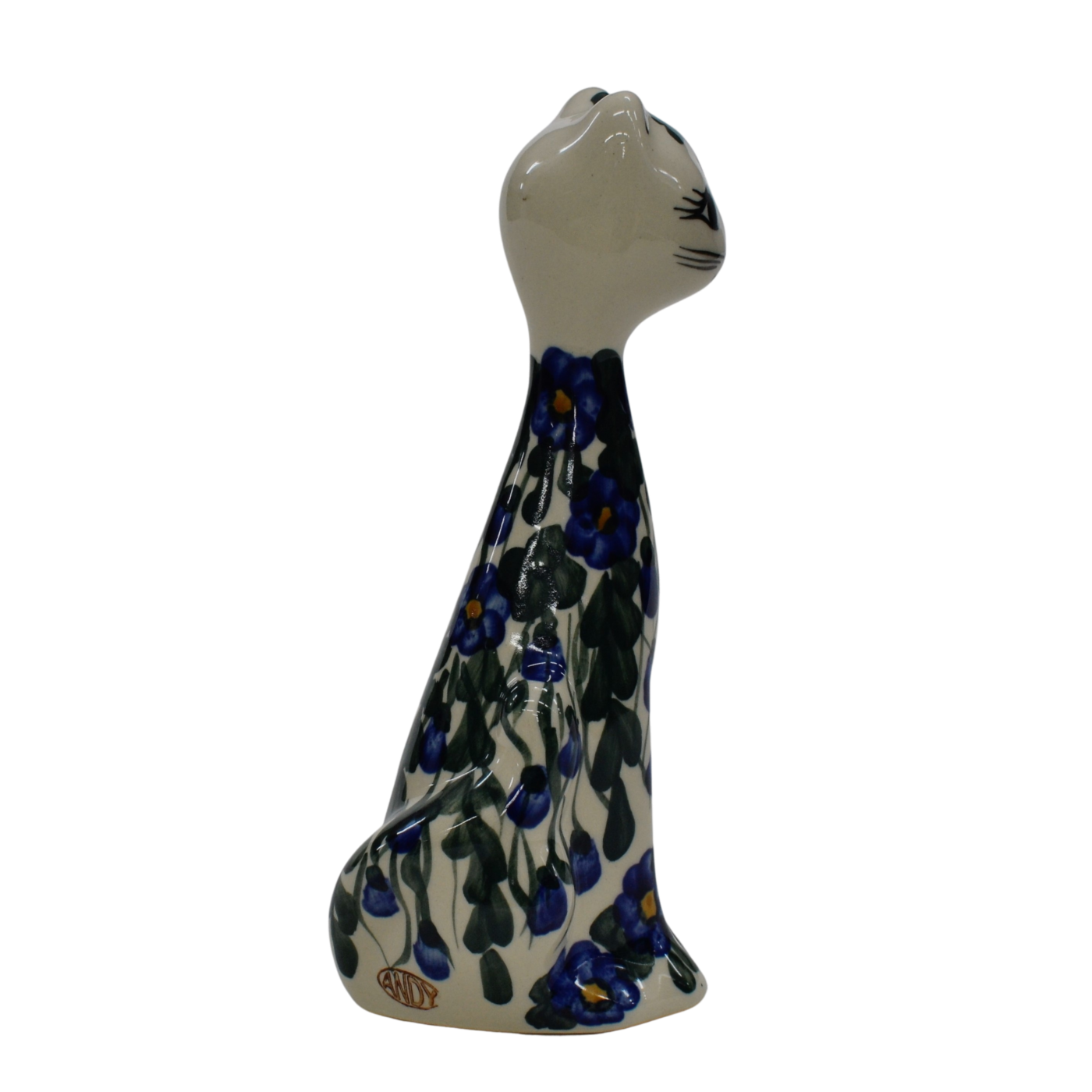 Oryginalny produkt ceramiki bolesławieckiej z zakładu ceramiki artystycznej, kot Bolek niski, ceramiczna figurka dekoracyjna.