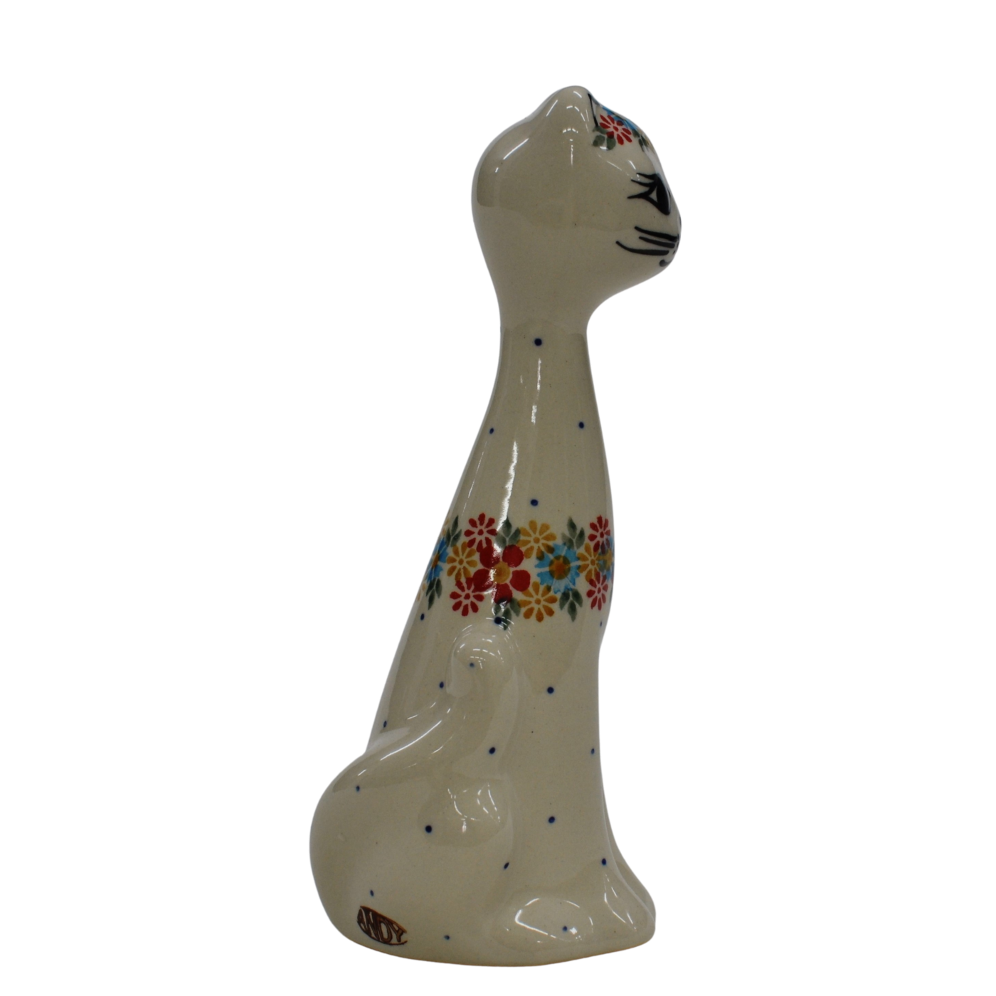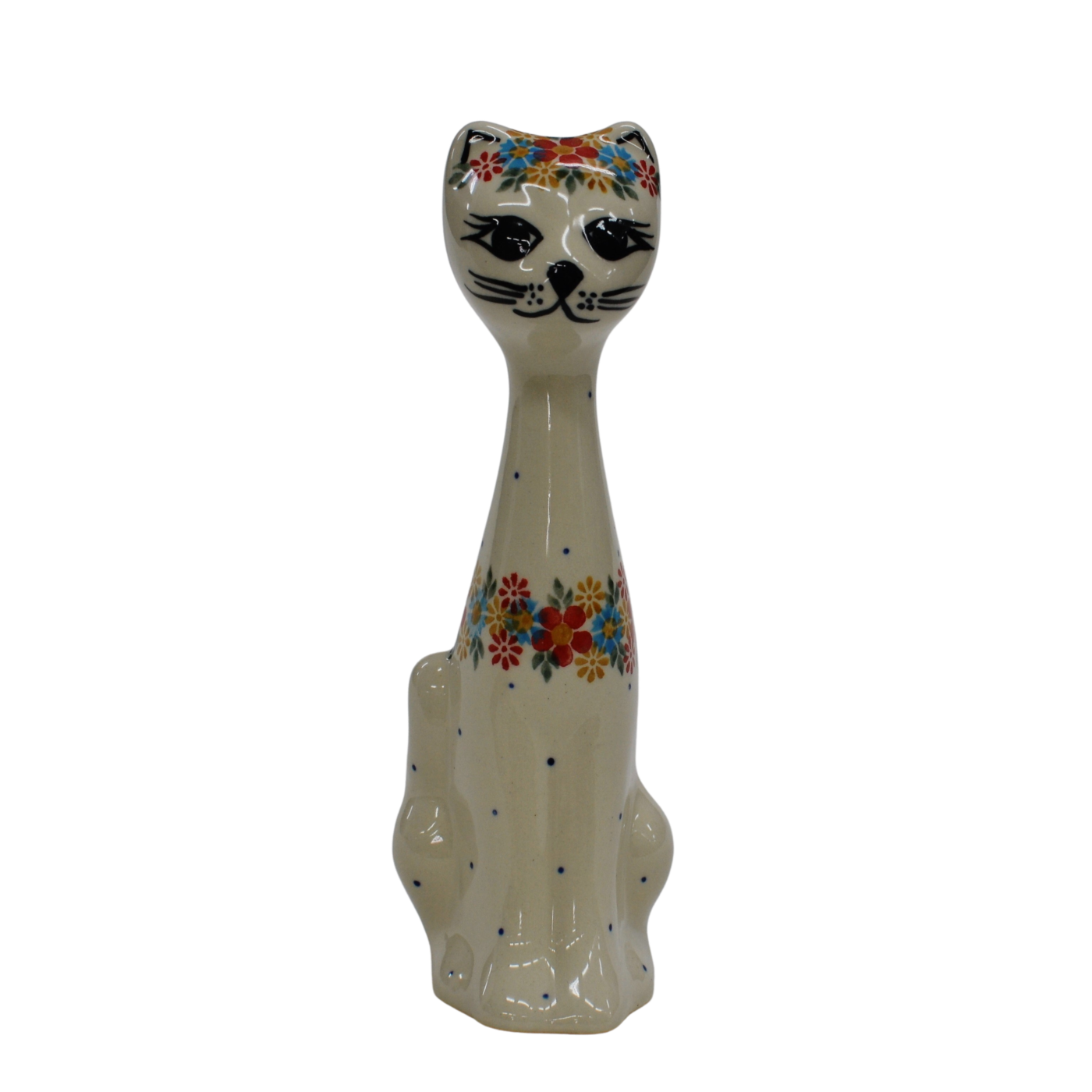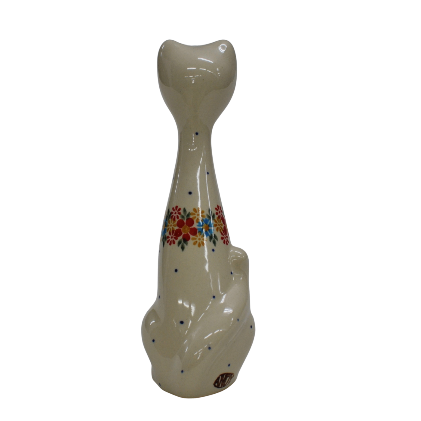 Oryginalny produkt ceramiki bolesławieckiej z zakładu ceramiki artystycznej, kot Bolek niski, ceramiczna figurka dekoracyjna.