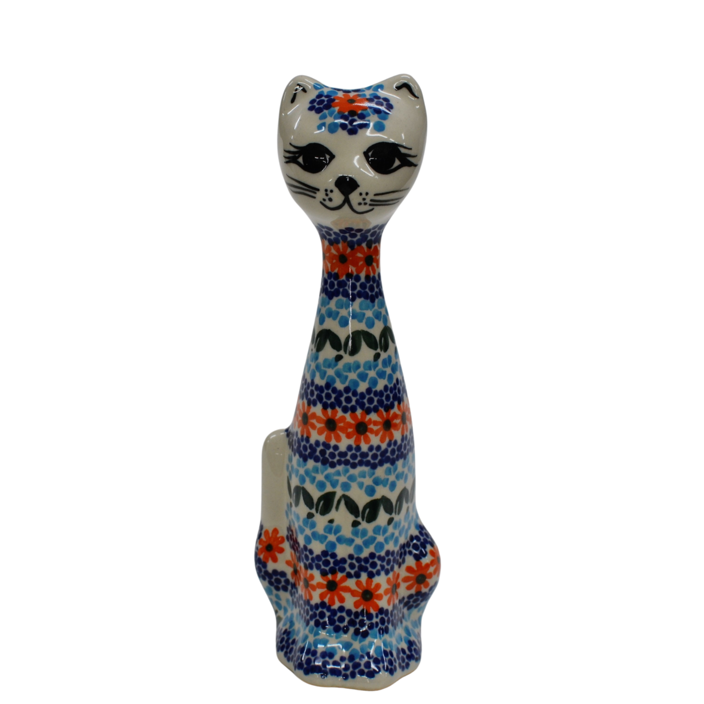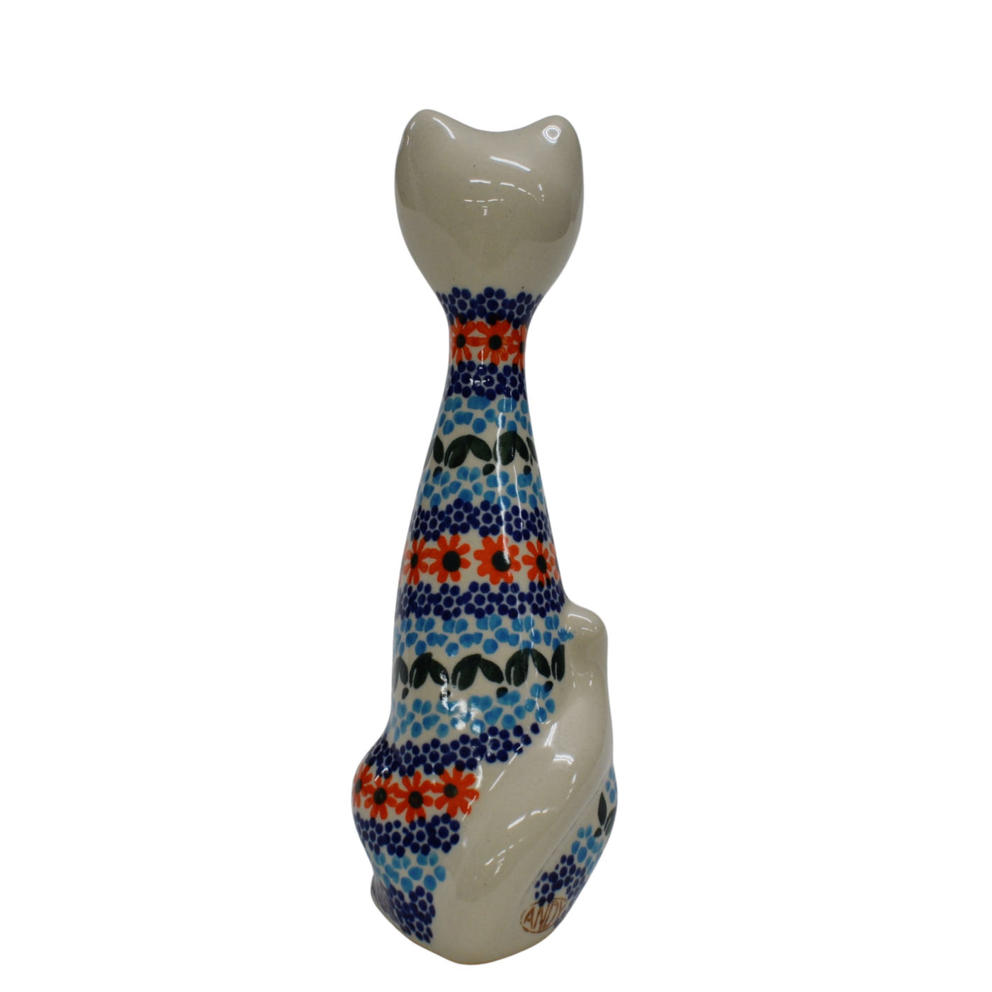 Oryginalny produkt ceramiki bolesławieckiej z zakładu ceramiki artystycznej, kot Bolek niski, ceramiczna figurka dekoracyjna.