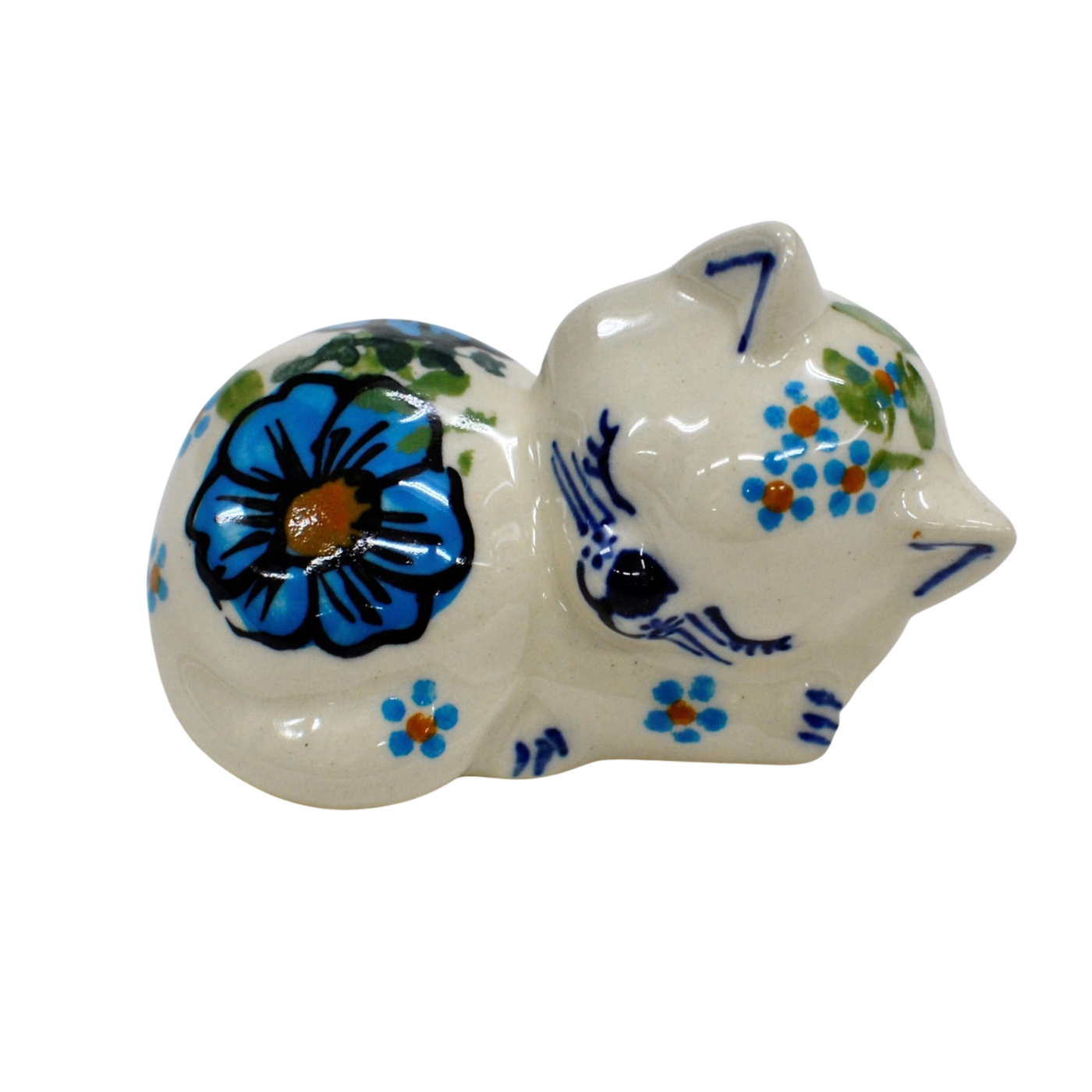 Oryginalny produkt ceramiki bolesławieckiej z zakładu ceramicznego, ANDY CERAMIKA – figurka ceramiczna, kotek śpioch.