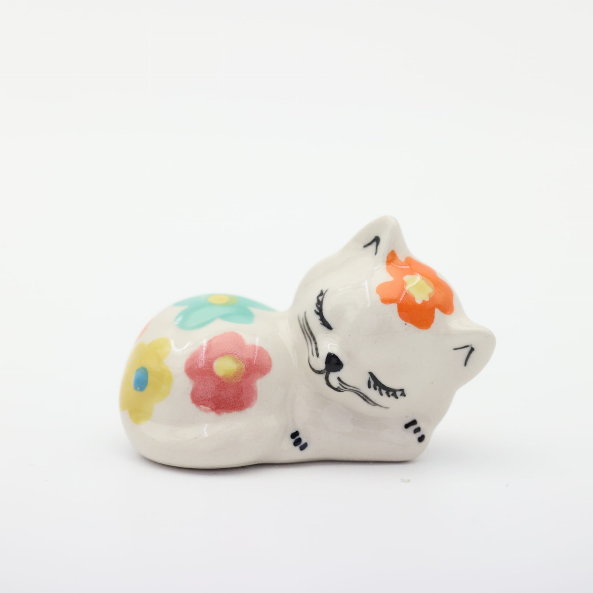 Oryginalny produkt ceramiki bolesławieckiej z zakładu ceramicznego, ANDY CERAMIKA – figurka ceramiczna, kotek śpioch.