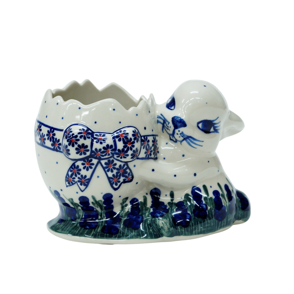 Wspaniały pomysł na wielkanocne i wiosenne ozdoby domu i mieszkania. Królik z jajkiem, który z pewnością pomieści doniczkę z kwiatami czy rzeżuchą a po nasypaniu do niej ziemi możesz hodować w niej wszelkie rośliny i kwiaty. Może posłużyć jako ceramiczna osłonka na donicę z kwiatami.
