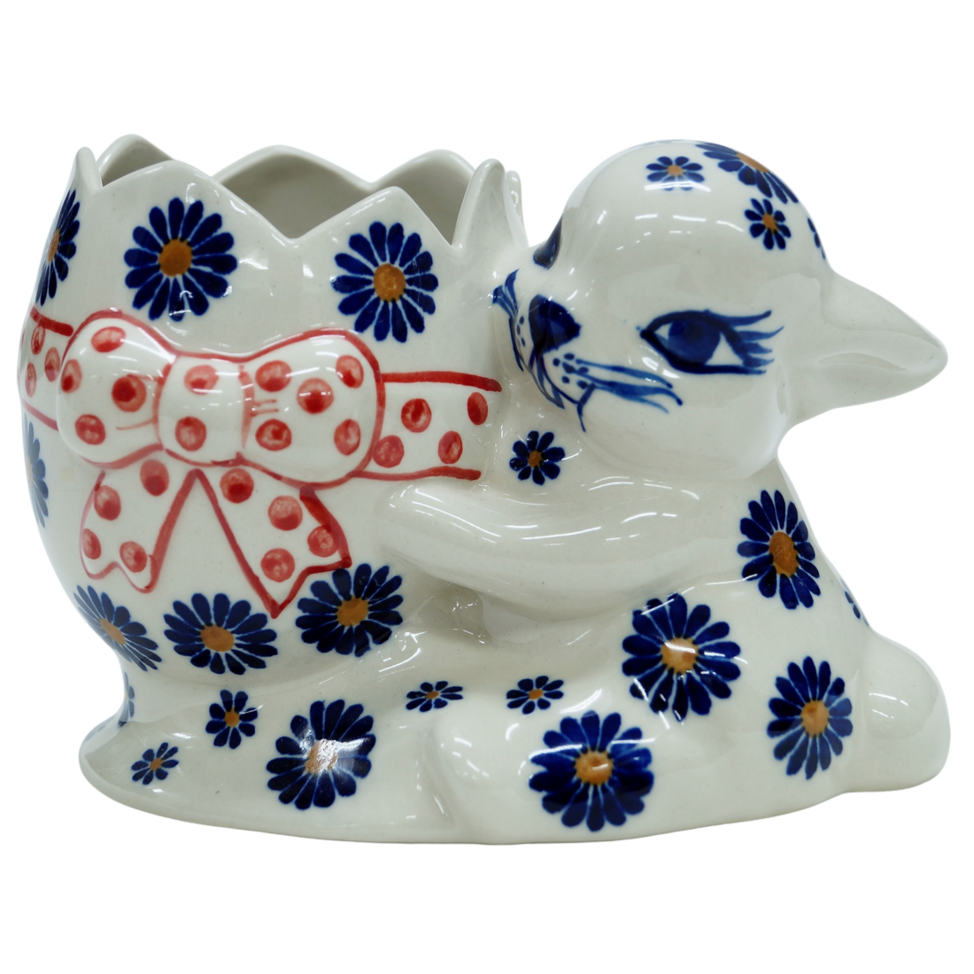 Przedstawiamy prawdziwy hit wiosennych i wielkanocnych dekoracji domu i ogrodów, ceramiczna figurka królika z jajkiem. Może posłużyć jako donica ceramiczna, która jest ręcznie malowana w zakładzie ceramiki bolesławieckiej, ANDY Ceramika. Szkliwiona wewnątrz i na zewnątrz.