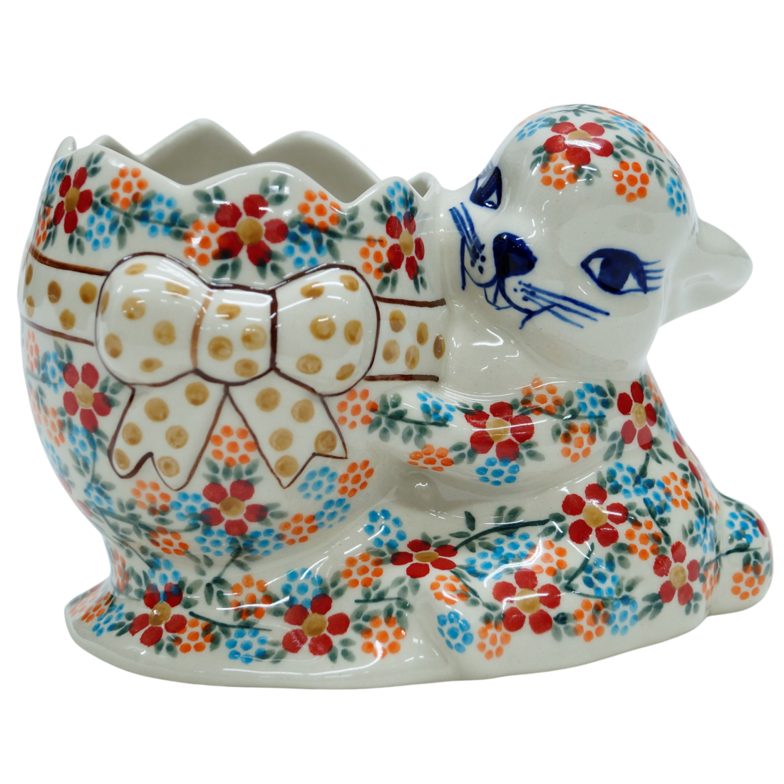 Wspaniały pomysł na wielkanocne i wiosenne ozdoby domu i mieszkania. Królik z jajkiem, który z pewnością pomieści doniczkę z kwiatami czy rzeżuchą a po nasypaniu do niej ziemi możesz hodować w niej wszelkie rośliny i kwiaty. Może posłużyć jako ceramiczna osłonka na donicę z kwiatami.