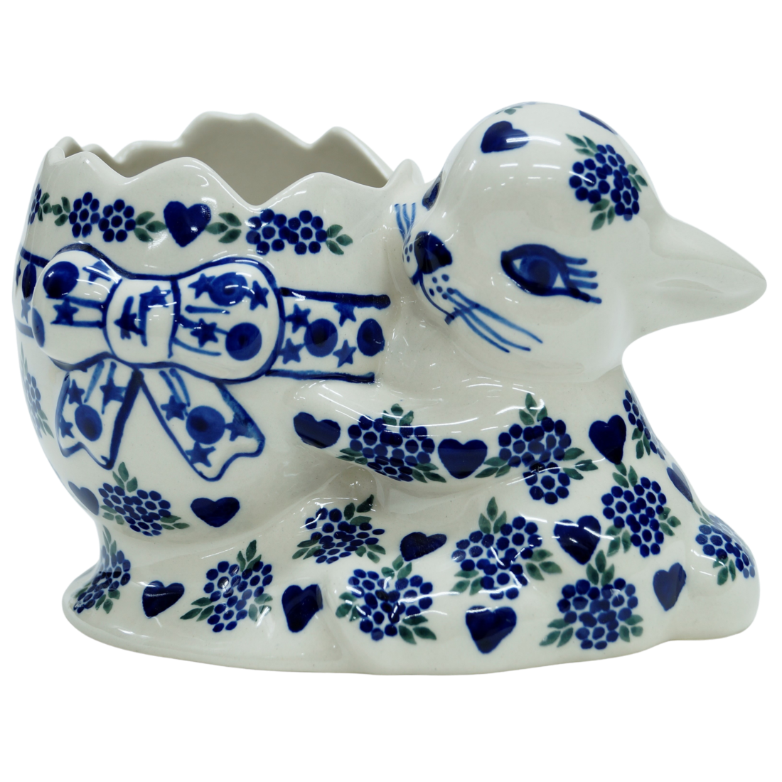 Przedstawiamy prawdziwy hit wiosennych i wielkanocnych dekoracji domu i ogrodów, ceramiczna figurka królika z jajkiem. Może posłużyć jako donica ceramiczna, która jest ręcznie malowana w zakładzie ceramiki bolesławieckiej, ANDY Ceramika. Szkliwiona wewnątrz i na zewnątrz.