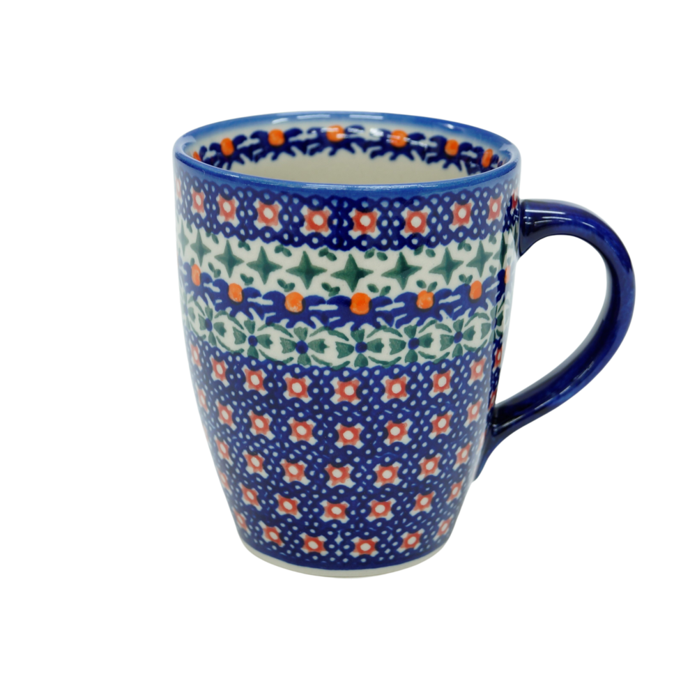 Kubek BEL o pojemności 360 ml, klasyczny wzór kubka o kształcie odwróconego dzwonka. To typowy kubek ceramiki bolesławieckiej, charakterystyczny kształt doskonale wkomponowujący się w każdą zastawę ceramiki. Według nas jego popularność wynika z idealnego rozmiaru i prostego kształtu. Nadaje się do zaparzania herbat, kawy, podawania soków i komputów. Można łatwo przywiesić za ucho kubka woreczek z herbatą, tak by nie zatopił się sznureczek z etykietą herbaty. Zdobione w unikatowe wzory, wykonane ze szczególną dbałością o detale to charakterystyczna cecha ceramiki zwanej porcelaną z Bolesławca.