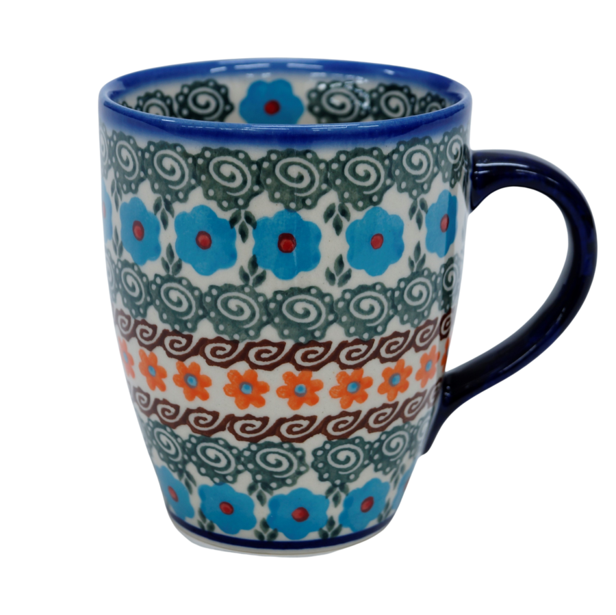 Kubek BEL o pojemności 360 ml, klasyczny wzór kubka o kształcie odwróconego dzwonka. To typowy kubek ceramiki bolesławieckiej, charakterystyczny kształt doskonale wkomponowujący się w każdą zastawę ceramiki. Według nas jego popularność wynika z idealnego rozmiaru i prostego kształtu. Nadaje się do zaparzania herbat, kawy, podawania soków i komputów. Można łatwo przywiesić za ucho kubka woreczek z herbatą, tak by nie zatopił się sznureczek z etykietą herbaty. Zdobione w unikatowe wzory, wykonane ze szczególną dbałością o detale to charakterystyczna cecha ceramiki zwanej porcelaną z Bolesławca.