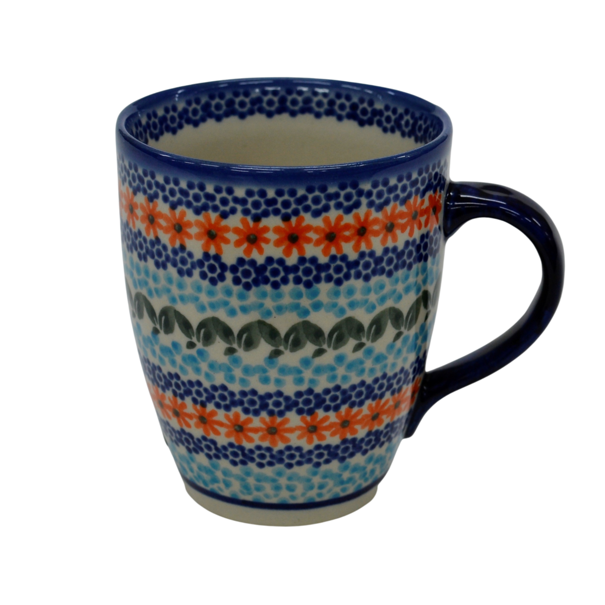 Kubek BEL o pojemności 360 ml, klasyczny wzór kubka o kształcie odwróconego dzwonka. To typowy kubek ceramiki bolesławieckiej, charakterystyczny kształt doskonale wkomponowujący się w każdą zastawę ceramiki. Według nas jego popularność wynika z idealnego rozmiaru i prostego kształtu. Nadaje się do zaparzania herbat, kawy, podawania soków i komputów. Można łatwo przywiesić za ucho kubka woreczek z herbatą, tak by nie zatopił się sznureczek z etykietą herbaty. Zdobione w unikatowe wzory, wykonane ze szczególną dbałością o detale to charakterystyczna cecha ceramiki zwanej porcelaną z Bolesławca.