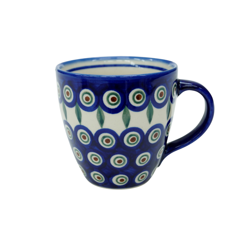 Wybierz Twój własny kubek z oryginalnej kolekcji ceramiki bolesławieckiej - kubek Bel duży, idealny na kawę czy herbatę podczas codziennego śniadania bądź w wyczekiwanej przerwie na kawę w pracy lub podczas obowiązków domowych. Samodzielnie zrobiony, domowy kompot z owoców lub suszu będzie smakował wyśmienicie bo podany w ręcznie zdobionym kubku z Bolesławca.