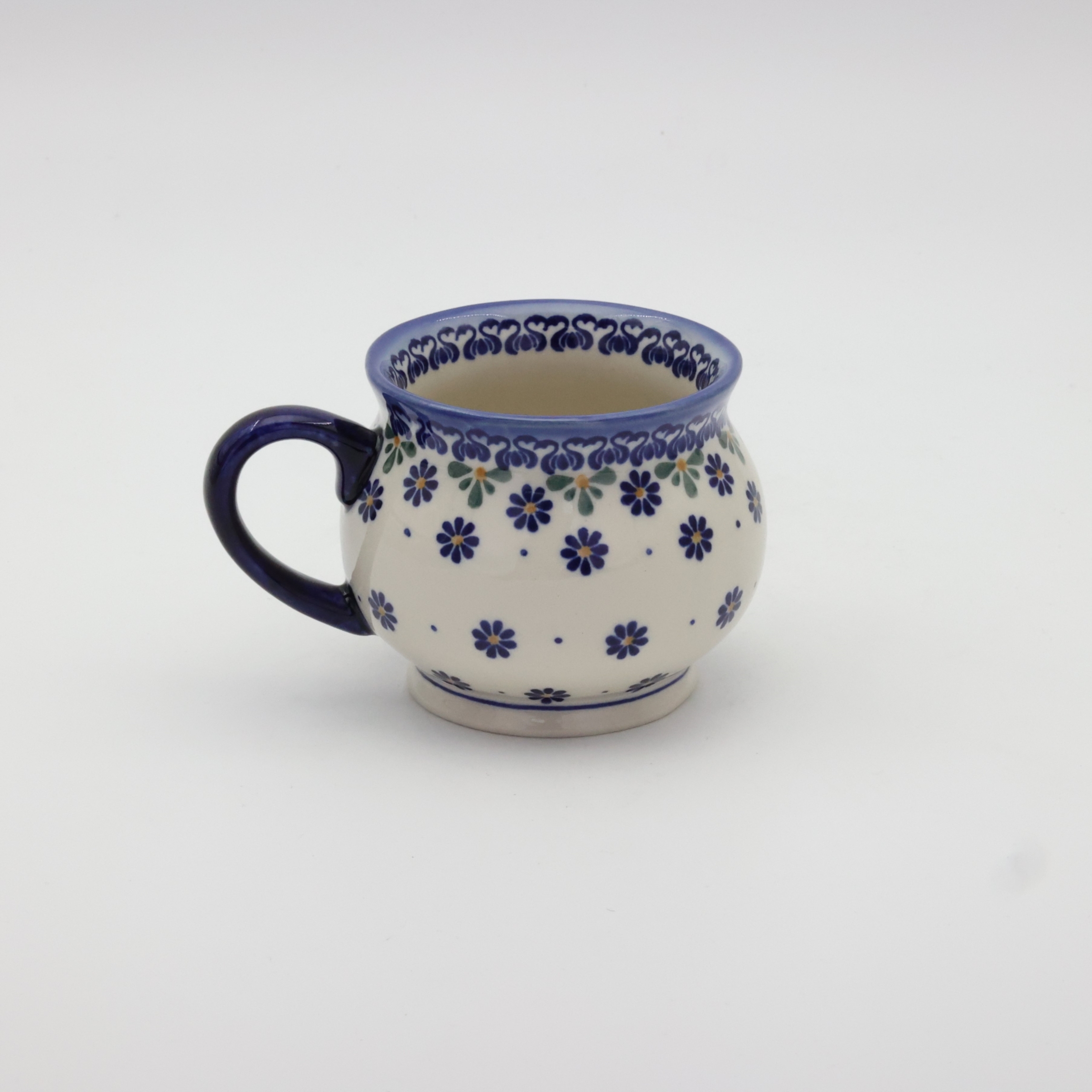 Jaki powinien być Twój kubek? Kubek, który pomieści dużą porcję kawy z mlekiem lub herbaty o pojemności 0,3 l? Jeśli tak, to kubek czeski w kształcie beczki jest rozwiązaniem optymalnym. Piękny kubek bolesławiecki z okrągłym, dużym, chwytnym uchem - kubek ceramiczny ręcznie zdobiony w manufakturze ceramiki artystycznej.