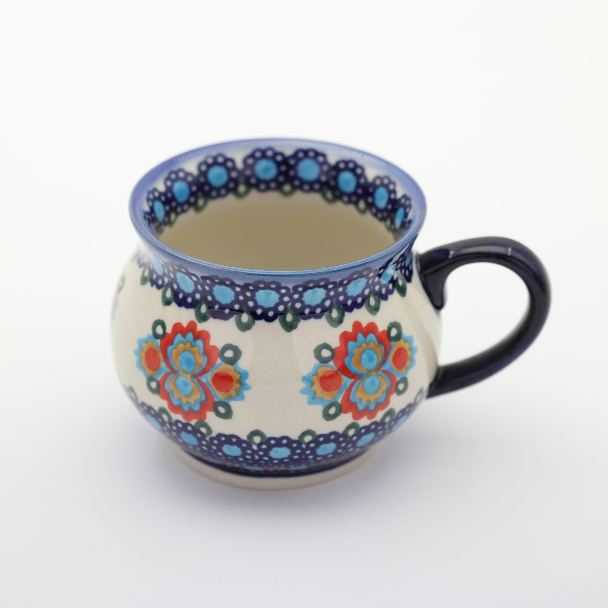Jaki powinien być Twój kubek? Kubek, który pomieści dużą porcję kawy z mlekiem lub herbaty o pojemności 0,3 l? Jeśli tak, to kubek czeski w kształcie beczki jest rozwiązaniem optymalnym. Piękny kubek bolesławiecki z okrągłym, dużym, chwytnym uchem - kubek ceramiczny ręcznie zdobiony w manufakturze ceramiki artystycznej.