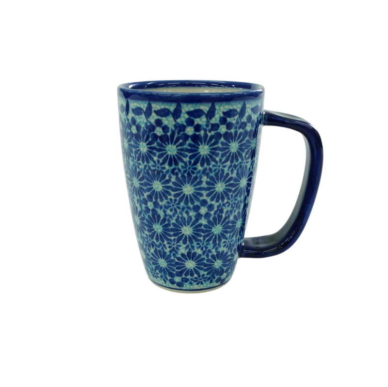 Tworząc kubki ceramiczne trzeba pamiętać jak skomplikowanym są produktem i jak ciężko jest trafić w gusta klientów. Nam się udało! Kubek Capuccino z uchem to brat kubka w tej samej wersji z łyżką, natomiast ten jest pozbawiony łyżki gdyż nie każdy z nas słodzi kawę bądź eksperymentuje z dodatkami do niej. Kubek jest duży, wysoki i bardzo ładnie leży w ręce, nawet męskiej, solidnie zbudowanej. Owalny kształt ucha dobrze komponuje się z dekoracjami wyrobów kamionki bolesławieckiej marki, ANDY CERAMIKA. Dużo barw i zdecydowane nasycenie kolorów pozwala wyróżniać nasze produkty spośród innych wyrobów ceramicznych nie powstałych w naszej rodzinnej manufakturze. Oryginalne style zdobienia, charakterystyczne tylko spod ręki naszych artystów, dodadzą efektywności Twojej kolekcji wyrobów ceramiki.