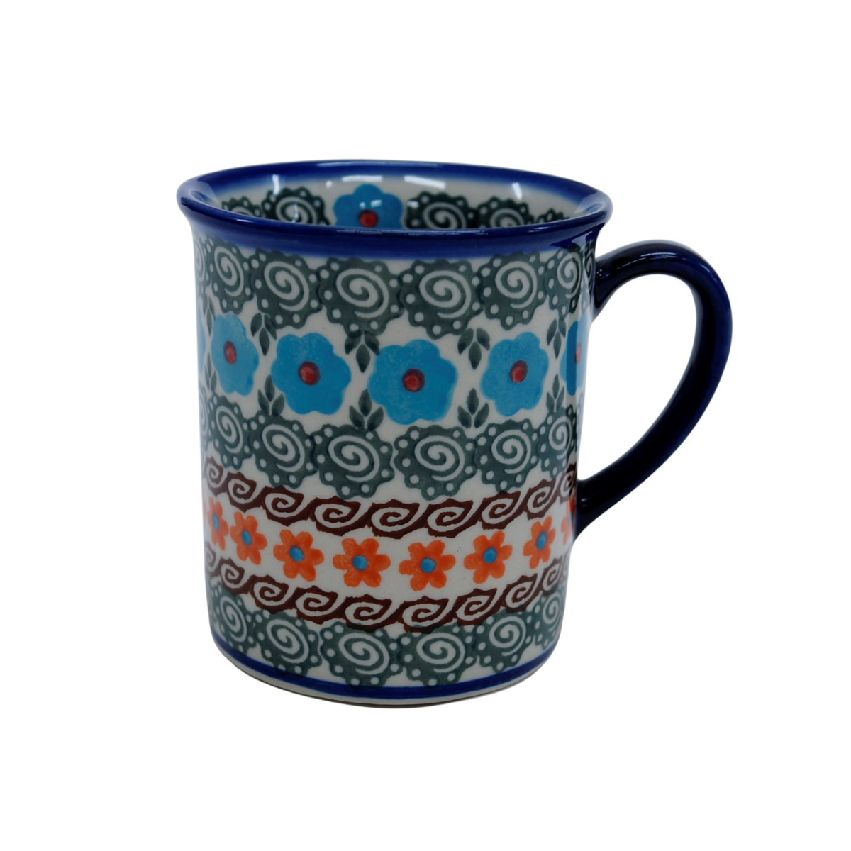 Kubek MARS, klasyczny wzór kubka o pionowym brzegu z lekko wywiniętym rantem na zewnątrz doskonale leżącym przy ustach. To typowy kubek ceramiki bolesławieckiej, charakterystyczny kształt doskonale wkomponowujący się w każdą zastawę ceramiki. Według nas jego popularność wynika z idealnego rozmiaru i prostego kształtu. Nadaje się do zaparzania herbat, kawy, podawania soków i komputów. Można łatwo przywiesić za ucho kubka woreczek z herbatą, tak by nie zatopił się sznureczek z etykietą herbaty. Zdobione w unikatowe wzory, wykonane ze szczególną dbałością o detale to charakterystyczna cecha ceramiki zwanej porcelaną z Bolesławca.