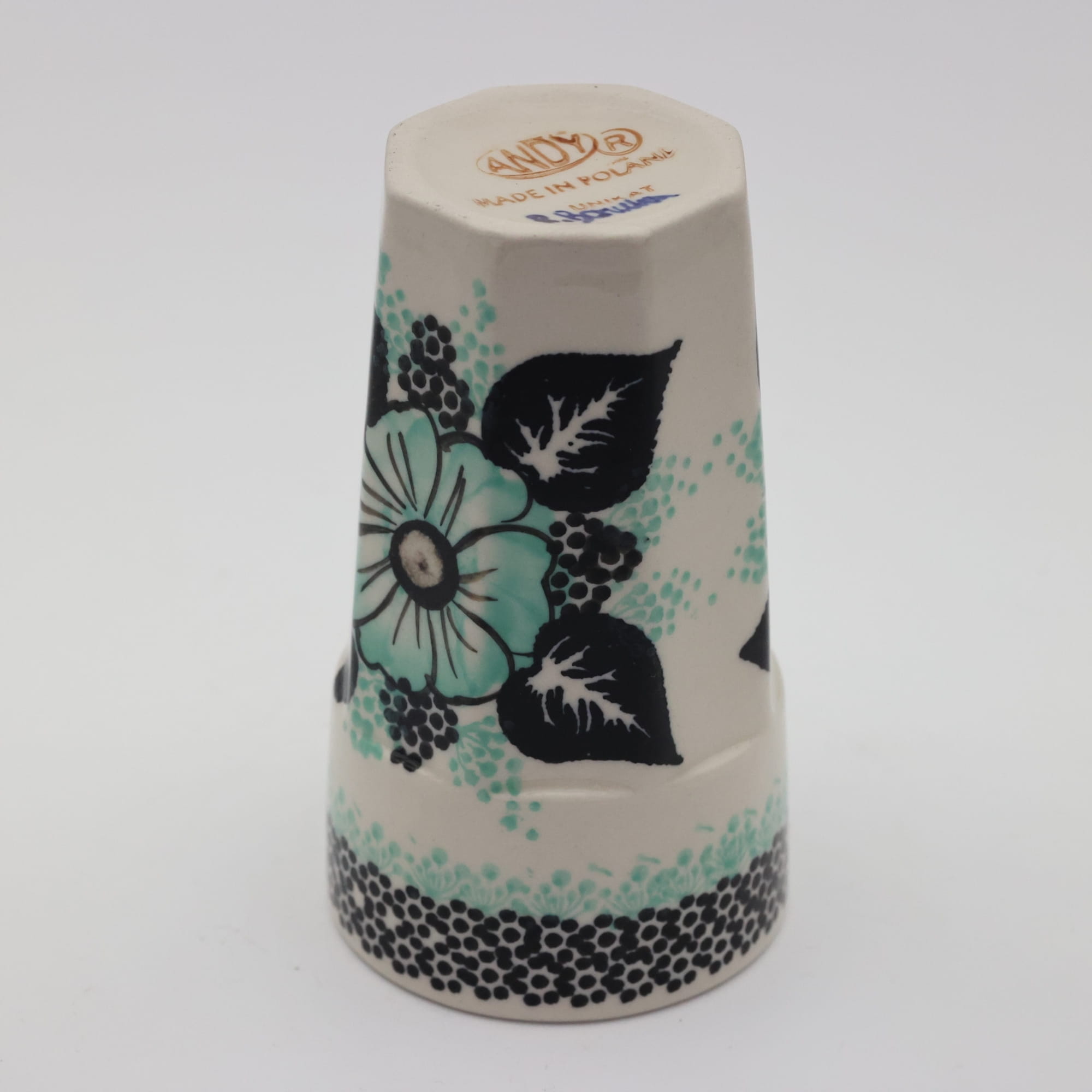 Oryginalny kubek z Bolesławca, ręcznie malowany o nowoczesnym, kanciastym kształcie. Pojemność kubka to 300 ml, jest wysoki i idealnie nadanie się do podawania herbaty bądź różnorakich kaw. Nam najbardziej służy do podawania słodkich kisielów i budyniu ale gorące kakao z pewnością również będzie smakowało wyśmienicie. Gorąca czekolada z bitą śmietaną podana w tym kubku, podczas przygotowywania zdjęć do oferty internetowej pochłonięta została przez fotografa błyskawicznie, mniam... palce lizać, uwielbiamy słodkie napoje!