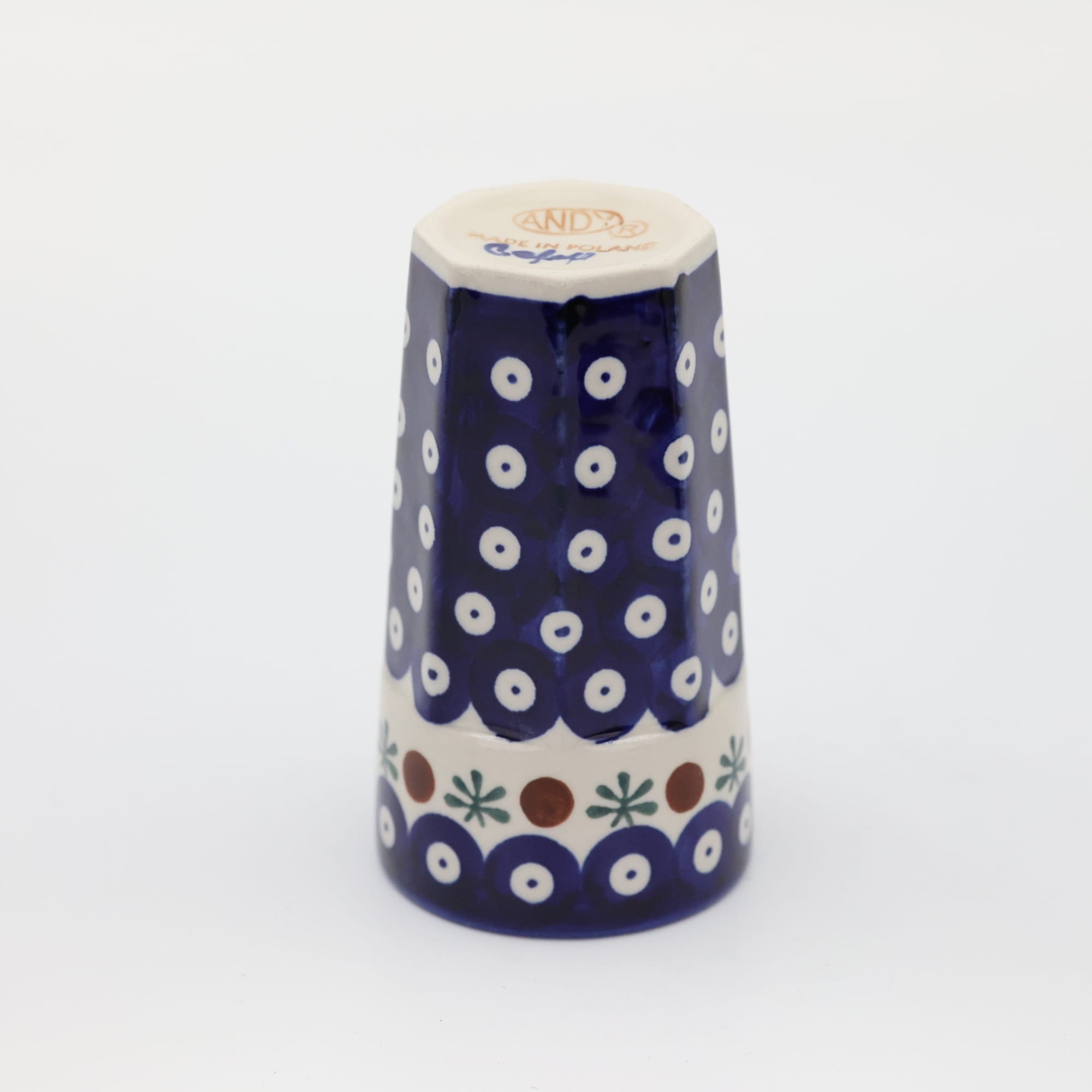 Oryginalny kubek z Bolesławca, ręcznie malowany o nowoczesnym, kanciastym kształcie. Pojemność kubka to 300 ml, jest wysoki i idealnie nadanie się do podawania herbaty bądź różnorakich kaw. Nam najbardziej służy do podawania słodkich kisielów i budyniu ale gorące kakao z pewnością również będzie smakowało wyśmienicie. Gorąca czekolada z bitą śmietaną podana w tym kubku, podczas przygotowywania zdjęć do oferty internetowej pochłonięta została przez fotografa błyskawicznie, mniam... palce lizać, uwielbiamy słodkie napoje!