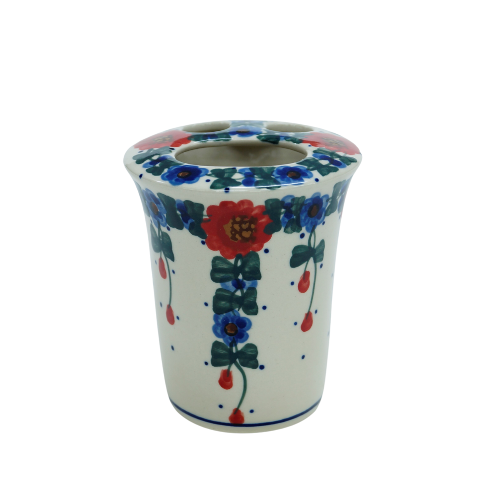 Przedstawiamy prawdziwy hit wśród wyrobów ceramicznych, topowy produkt ceramiki bolesławieckiej do dekoracji łazienek - kubek na szczoteczki do zębów na szczoteczki do zębów oraz pastę. Wykonany z najwyższej jakości ceramiki, ręcznie malowanej w Bolesławcu.