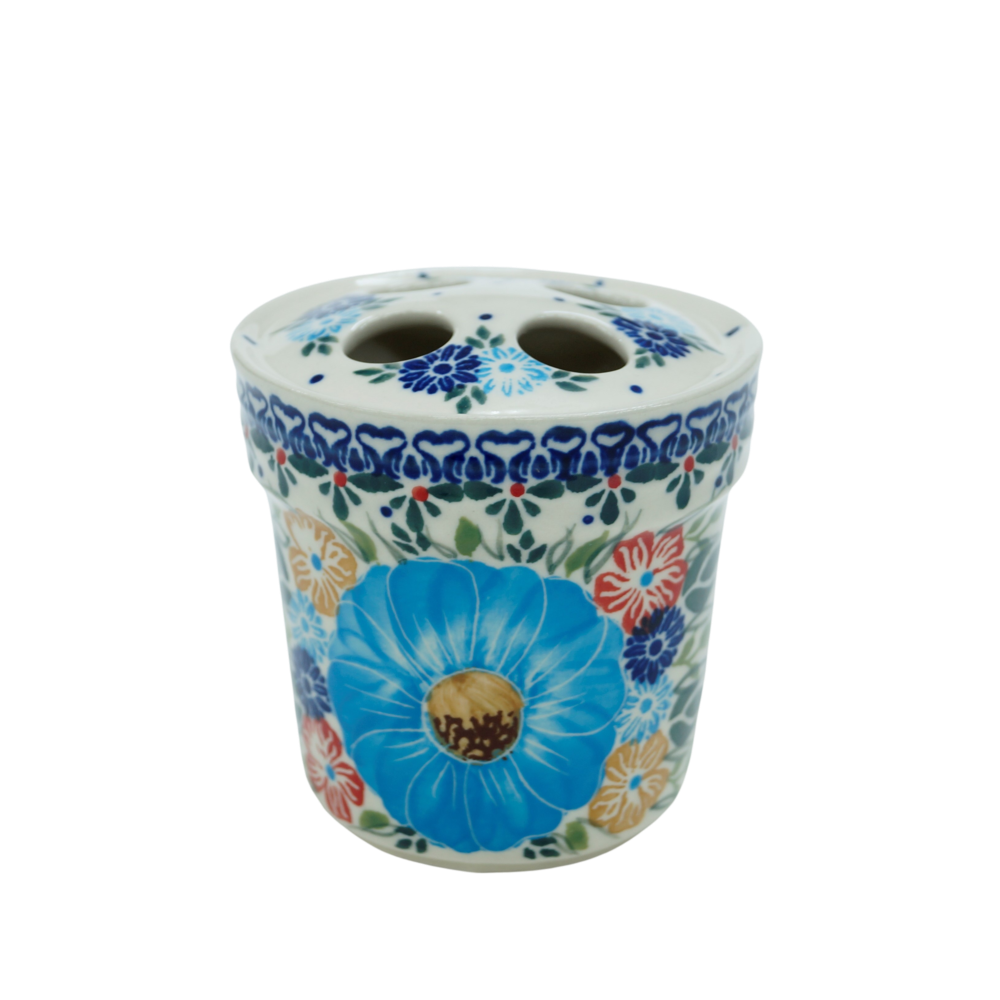 Przedstawiamy prawdziwy hit wśród wyrobów ceramicznych, topowy produkt ceramiki bolesławieckiej do dekoracji łazienek - kubek na szczoteczki do zębów z rantem(z czteroma otworami na szczoteczki do zębów). Wykonany z najwyższej jakości ceramiki, ręcznie malowanej w Bolesławcu.