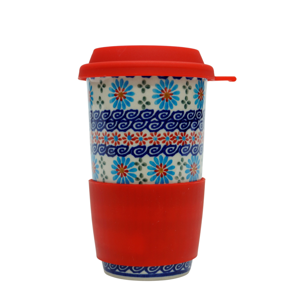 Kubek podróżny z pokrywką i nakładką silikonową do przewożenia gorącej kawy lub herbaty w trakcie podróży autem, spaceru z wózkiem bądź innych aktywności fizycznych. Idealne rozwiązanie dla osób uwielbiających kawę w kubku, który dłużej utrzyma jej ciepło. Dobrze dopasowana pokrywka uniemożliwia wylewanie się napojów i zabezpiecza przed nie kontrolowanym wylaniem się kawy bądź herbaty i oparzeniem się.
