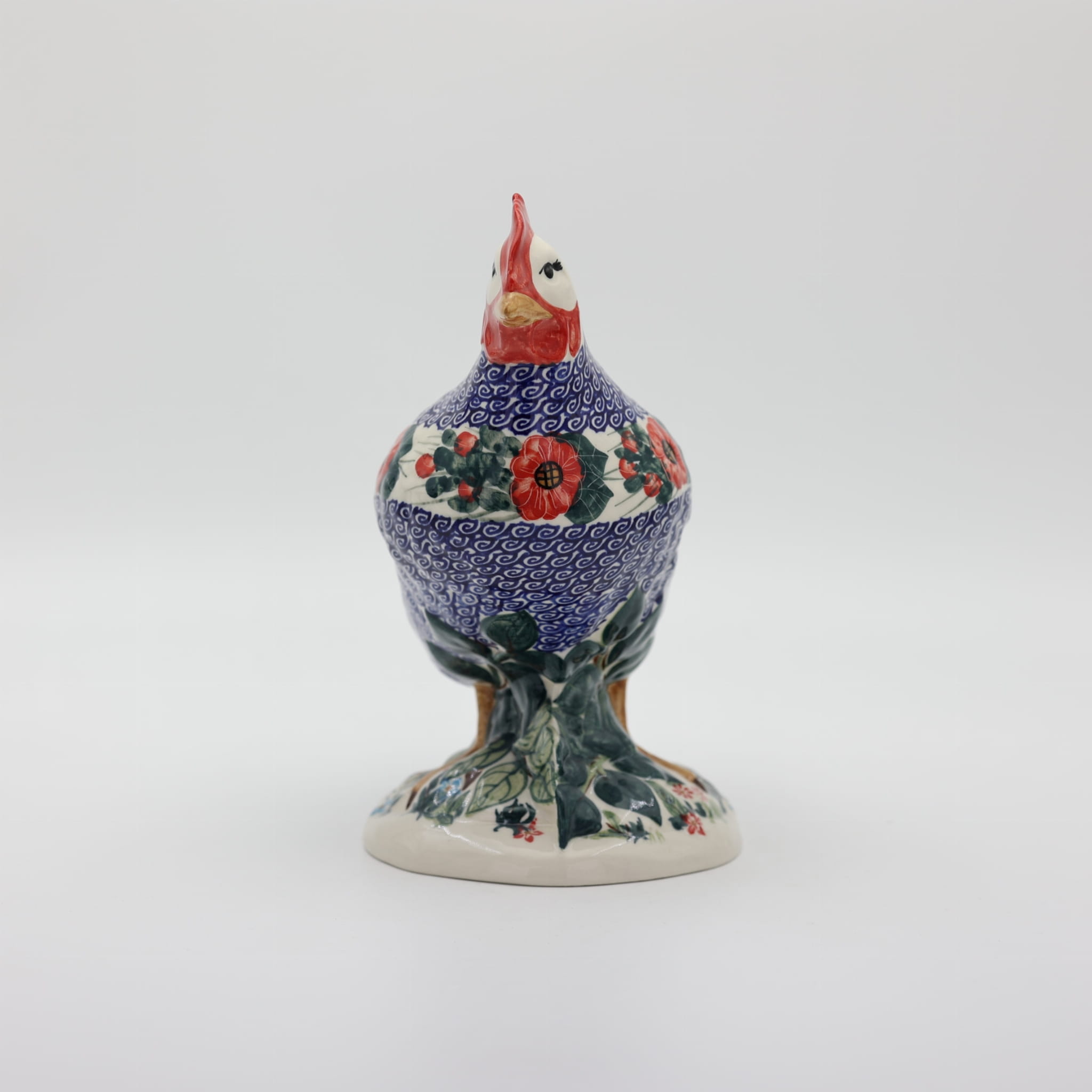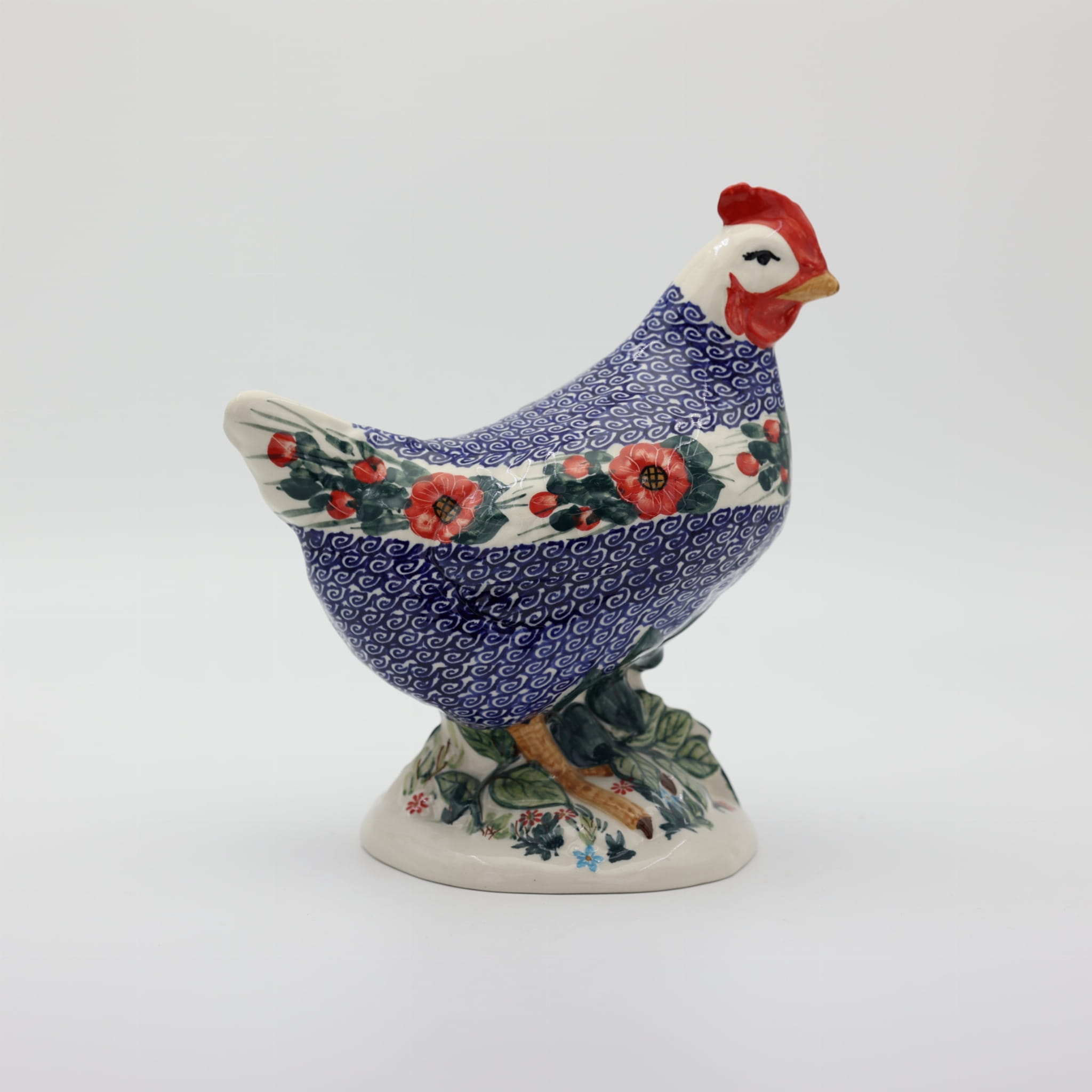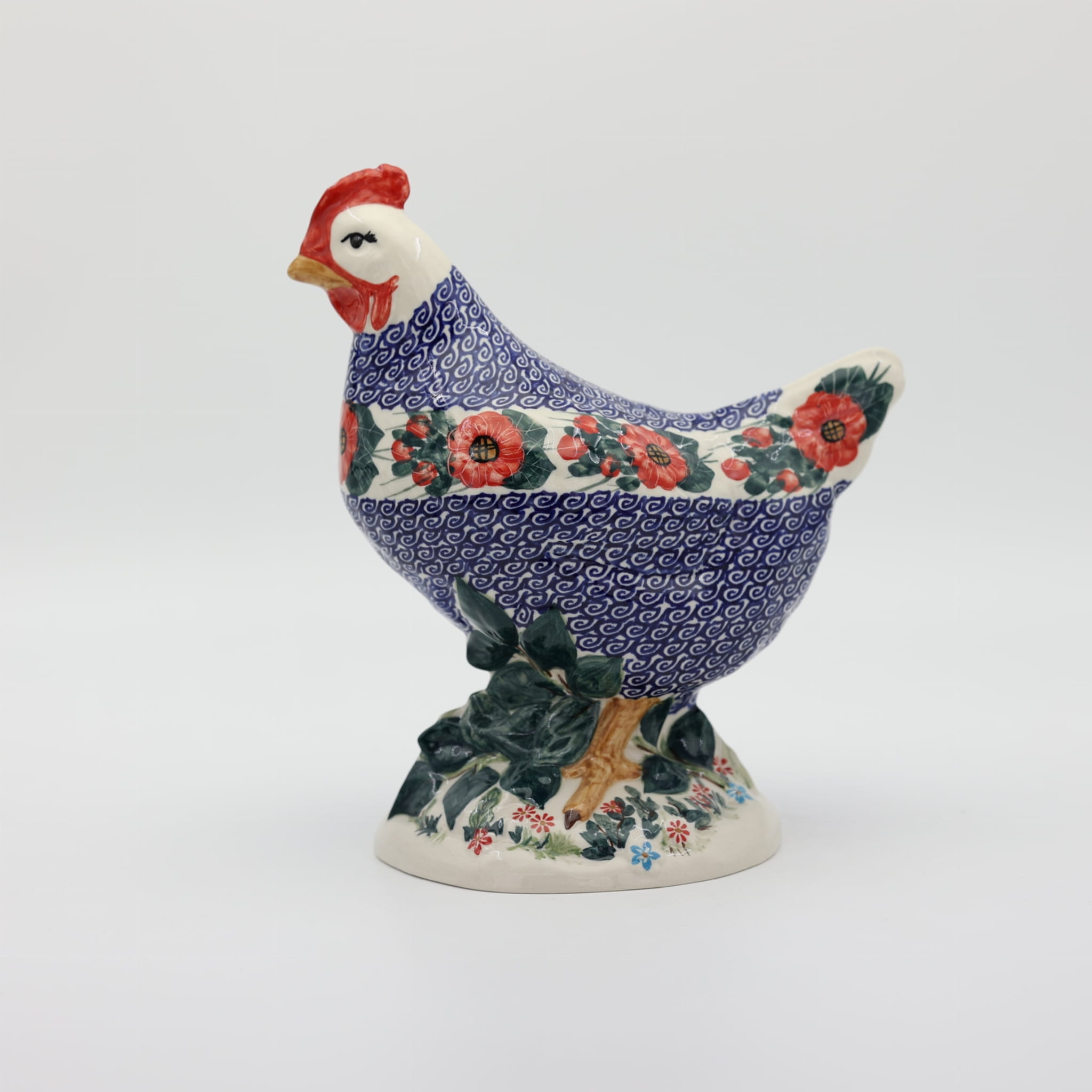 Ożyw swój dom i ogród wyjątkową kurą ceramiczną z Bolesławca, zdobioną tradycyjną metodą stempelkową. Każda figurka to unikalne dzieło sztuki, ręcznie malowane przez utalentowanych artystów, którzy tworzą bogate, kolorowe wzory inspirowane naturą. Nasza kura zachwyca detalami – pełna wiosennych kwiatów, barwnych akcentów i wielkanocnych zdobień, stanie się niepowtarzalnym elementem Twojej świątecznej aranżacji.