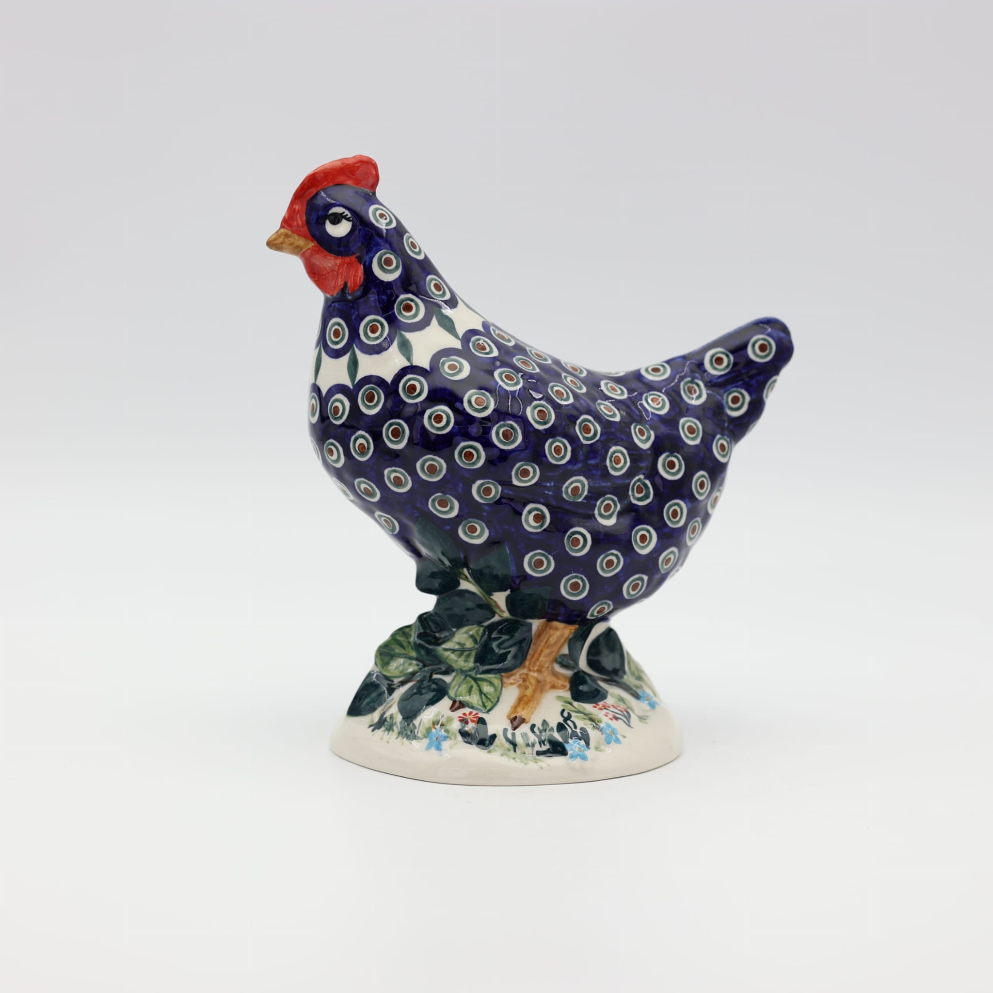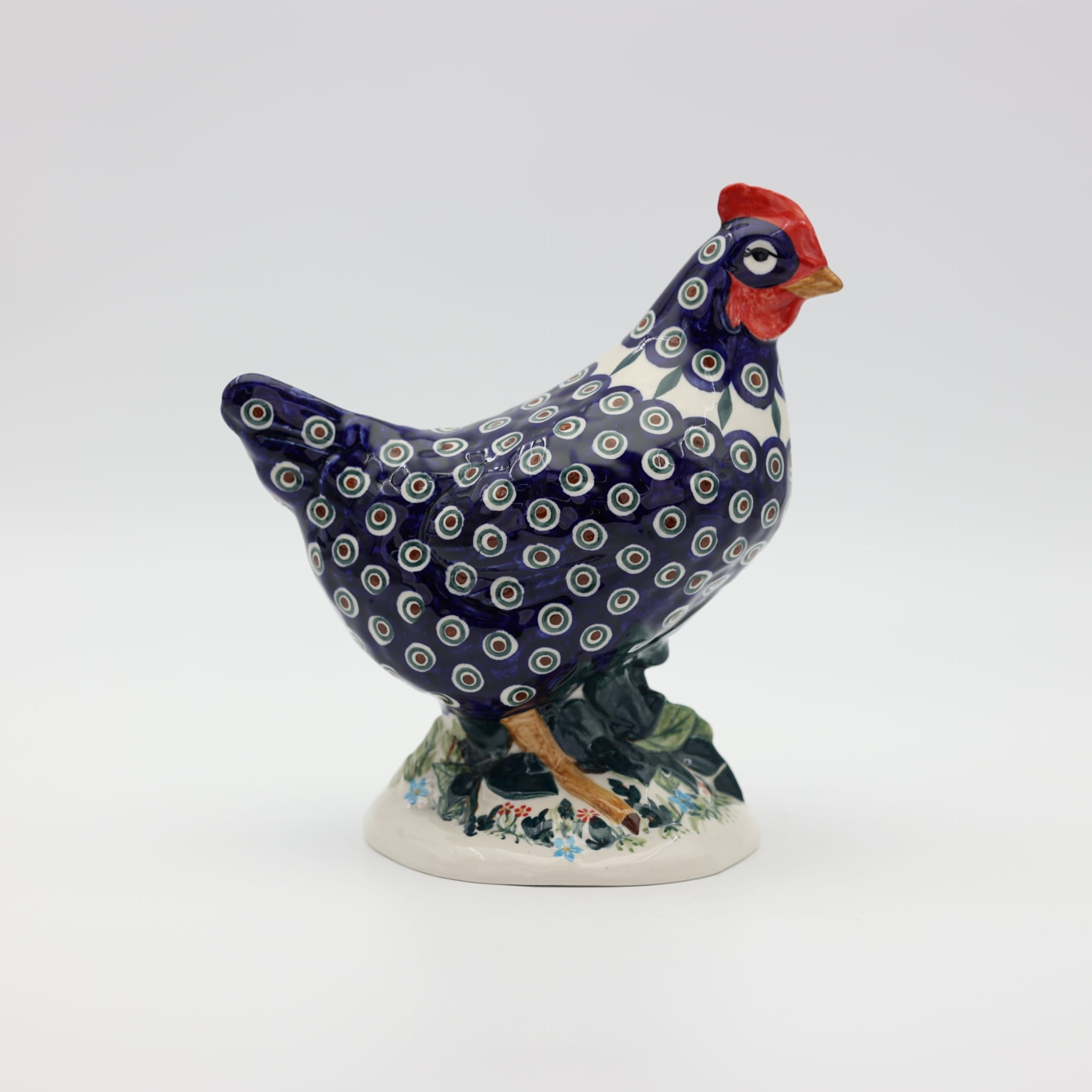Ożyw swój dom i ogród wyjątkową kurą ceramiczną z Bolesławca, zdobioną tradycyjną metodą stempelkową. Każda figurka to unikalne dzieło sztuki, ręcznie malowane przez utalentowanych artystów, którzy tworzą bogate, kolorowe wzory inspirowane naturą. Nasza kura zachwyca detalami – pełna wiosennych kwiatów, barwnych akcentów i wielkanocnych zdobień, stanie się niepowtarzalnym elementem Twojej świątecznej aranżacji.