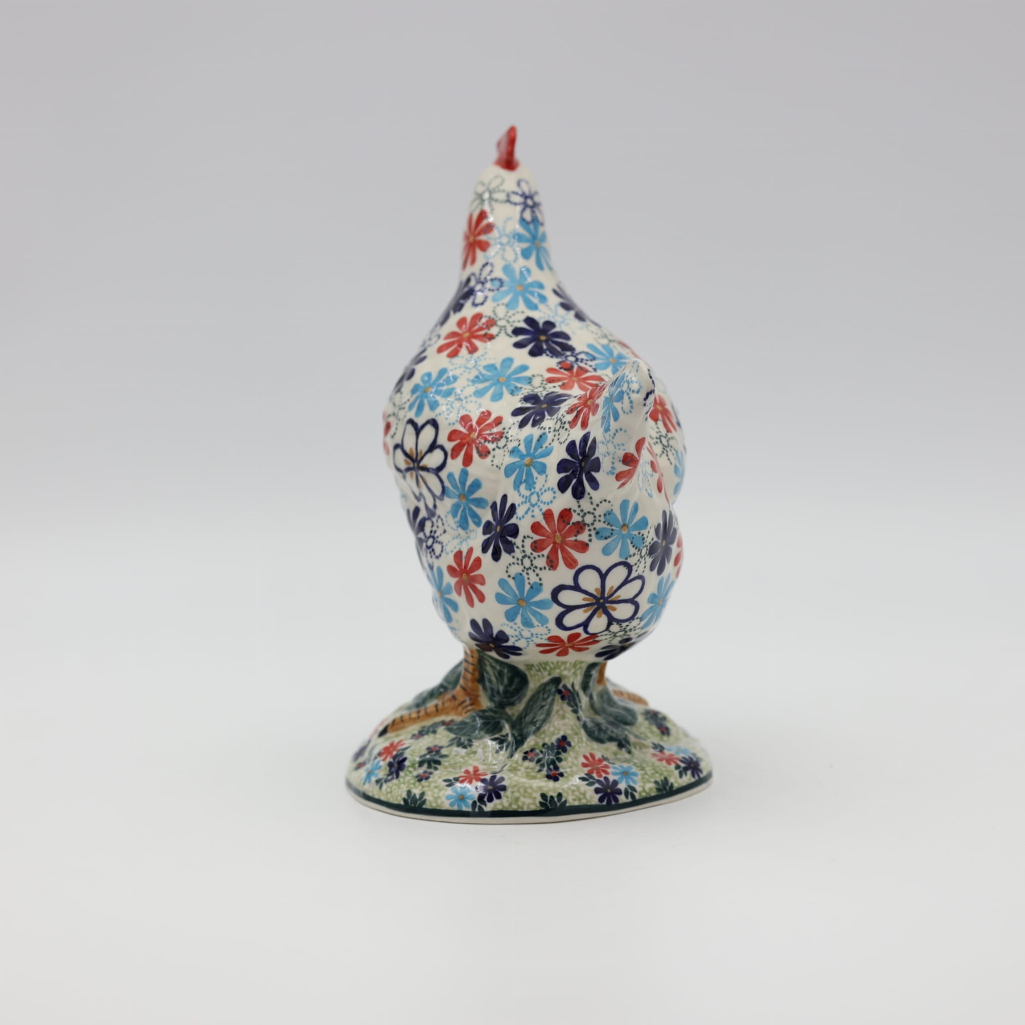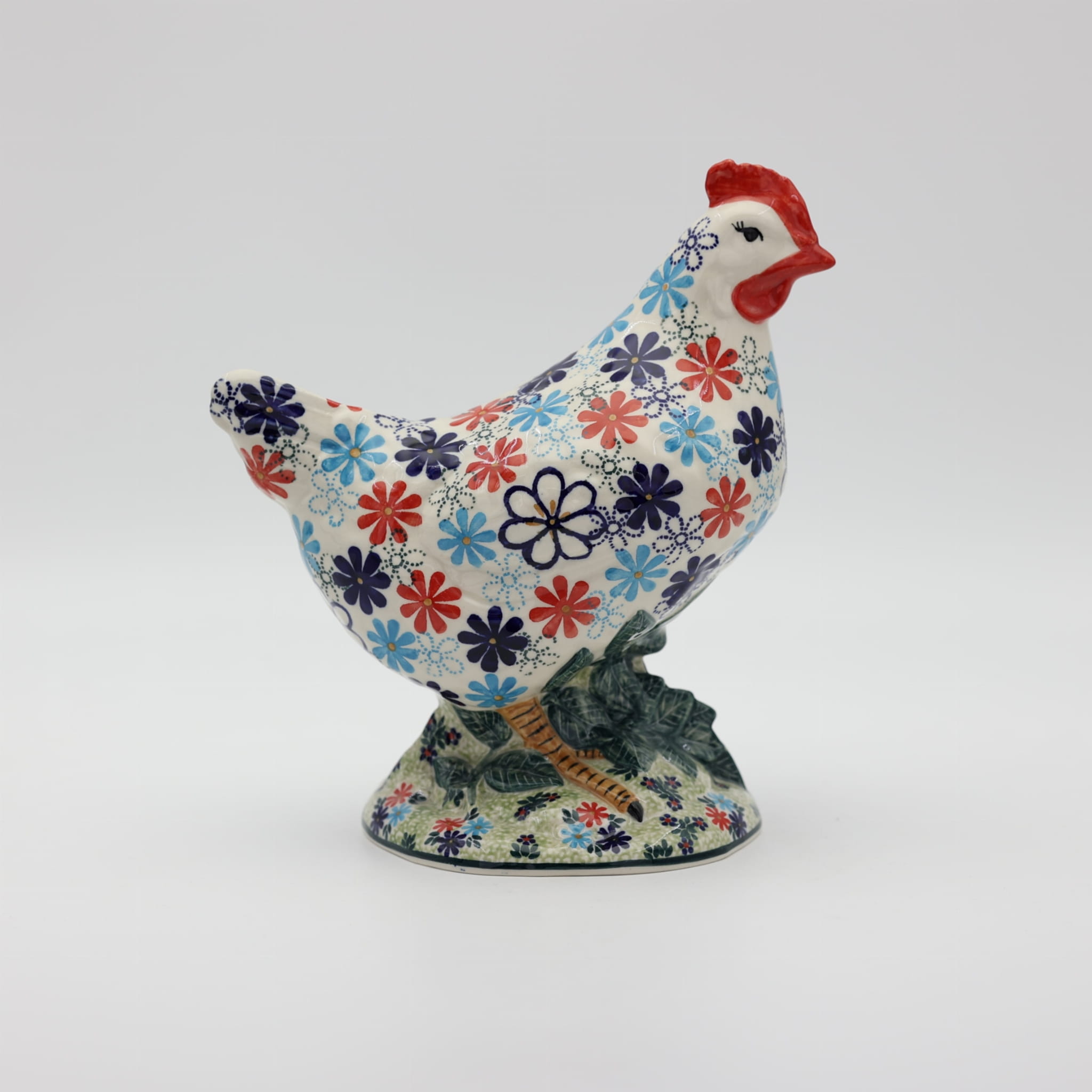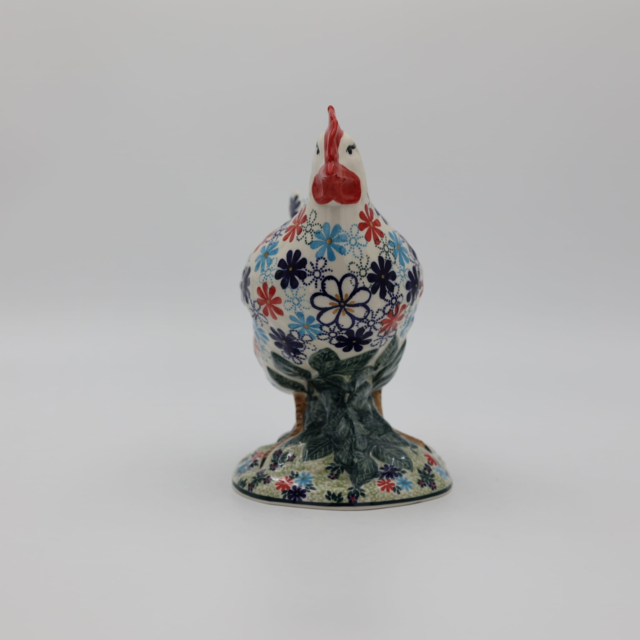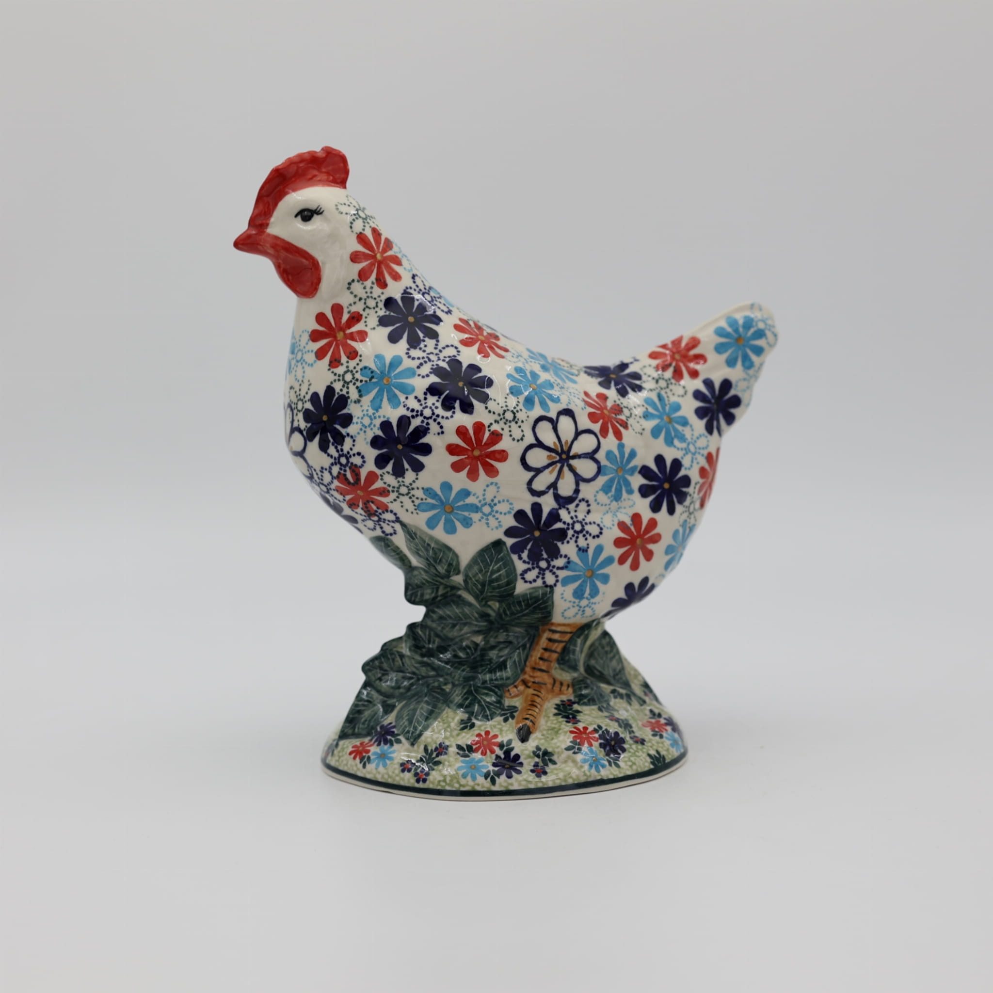 Ożyw swój dom i ogród wyjątkową kurą ceramiczną z Bolesławca, zdobioną tradycyjną metodą stempelkową. Każda figurka to unikalne dzieło sztuki, ręcznie malowane przez utalentowanych artystów, którzy tworzą bogate, kolorowe wzory inspirowane naturą. Nasza kura zachwyca detalami – pełna wiosennych kwiatów, barwnych akcentów i wielkanocnych zdobień, stanie się niepowtarzalnym elementem Twojej świątecznej aranżacji.