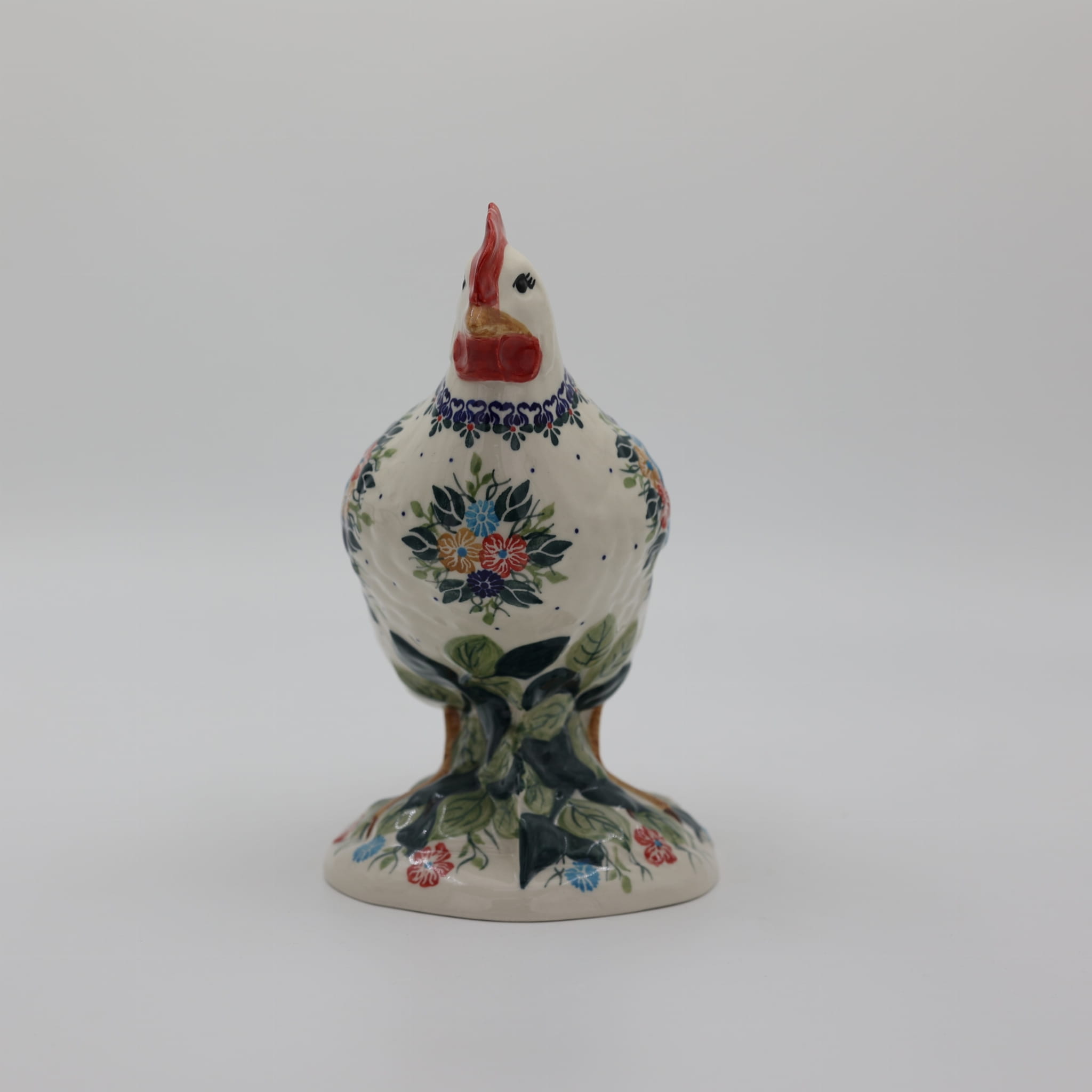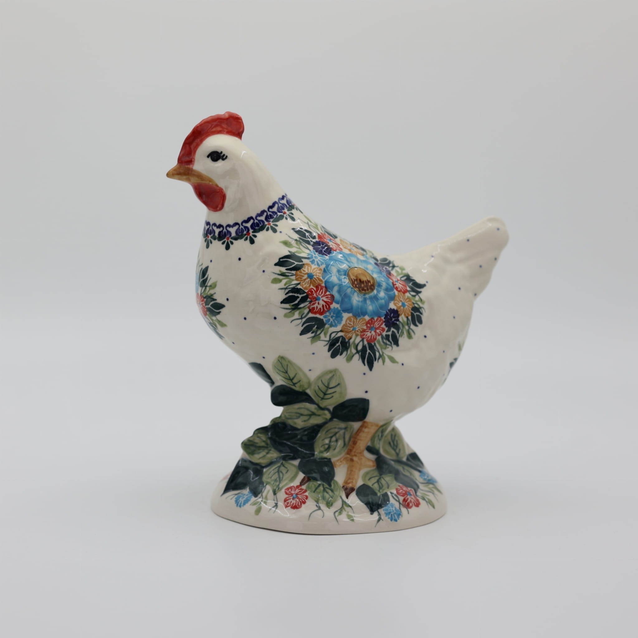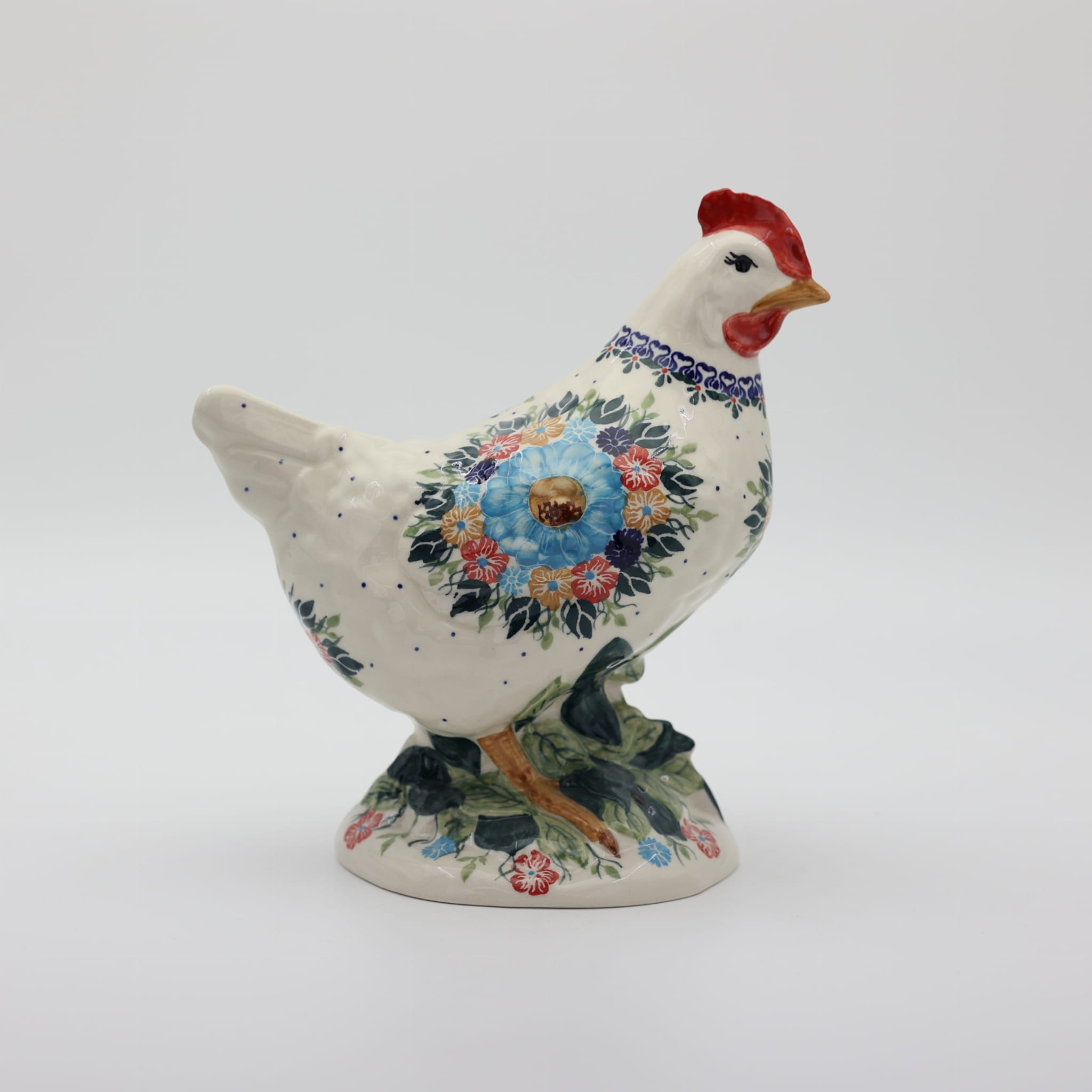 Ożyw swój dom i ogród wyjątkową kurą ceramiczną z Bolesławca, zdobioną tradycyjną metodą stempelkową. Każda figurka to unikalne dzieło sztuki, ręcznie malowane przez utalentowanych artystów, którzy tworzą bogate, kolorowe wzory inspirowane naturą. Nasza kura zachwyca detalami – pełna wiosennych kwiatów, barwnych akcentów i wielkanocnych zdobień, stanie się niepowtarzalnym elementem Twojej świątecznej aranżacji.