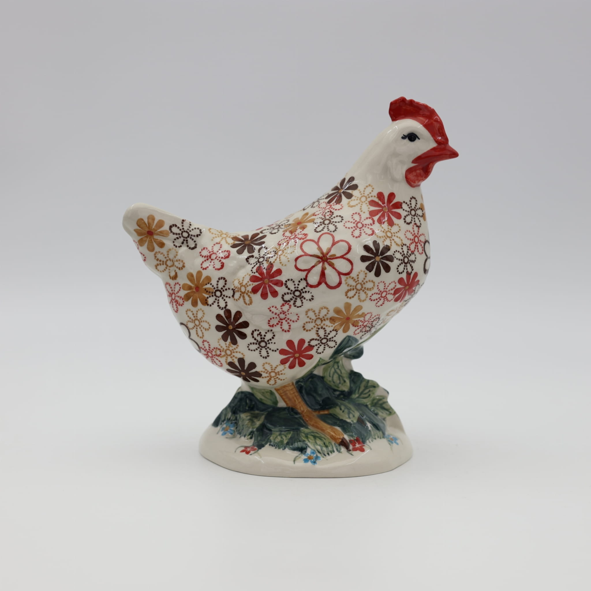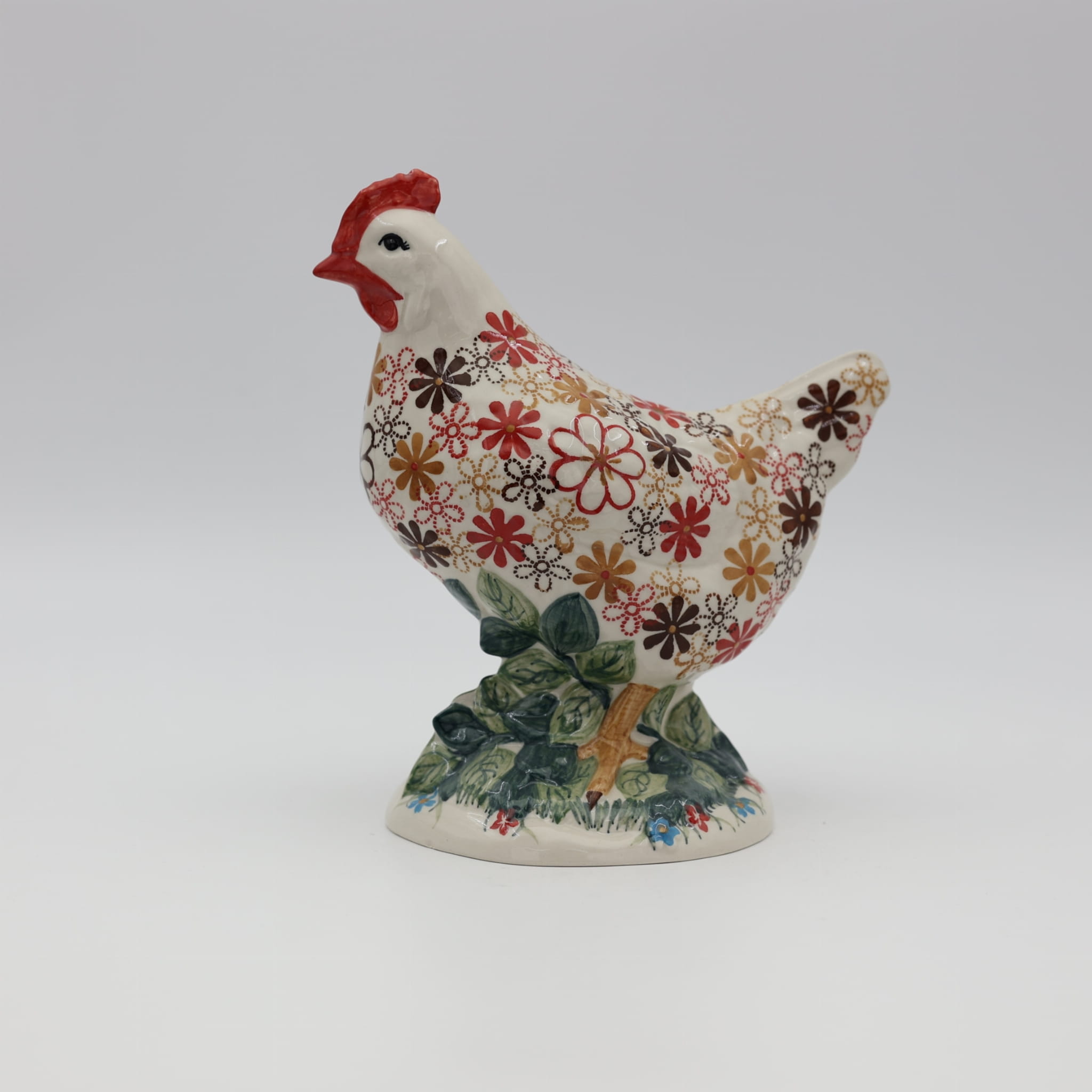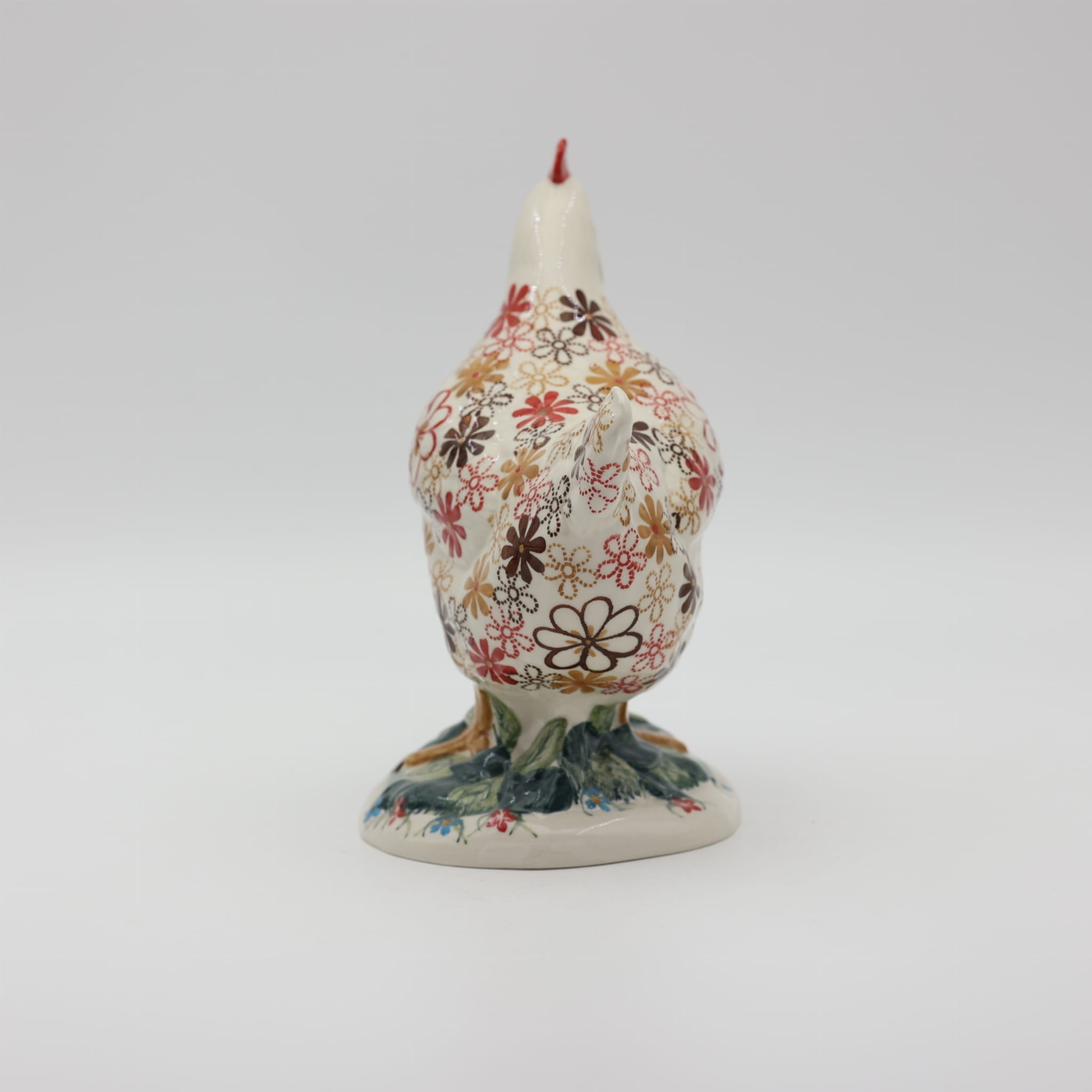 Ożyw swój dom i ogród wyjątkową kurą ceramiczną z Bolesławca, zdobioną tradycyjną metodą stempelkową. Każda figurka to unikalne dzieło sztuki, ręcznie malowane przez utalentowanych artystów, którzy tworzą bogate, kolorowe wzory inspirowane naturą. Nasza kura zachwyca detalami – pełna wiosennych kwiatów, barwnych akcentów i wielkanocnych zdobień, stanie się niepowtarzalnym elementem Twojej świątecznej aranżacji.