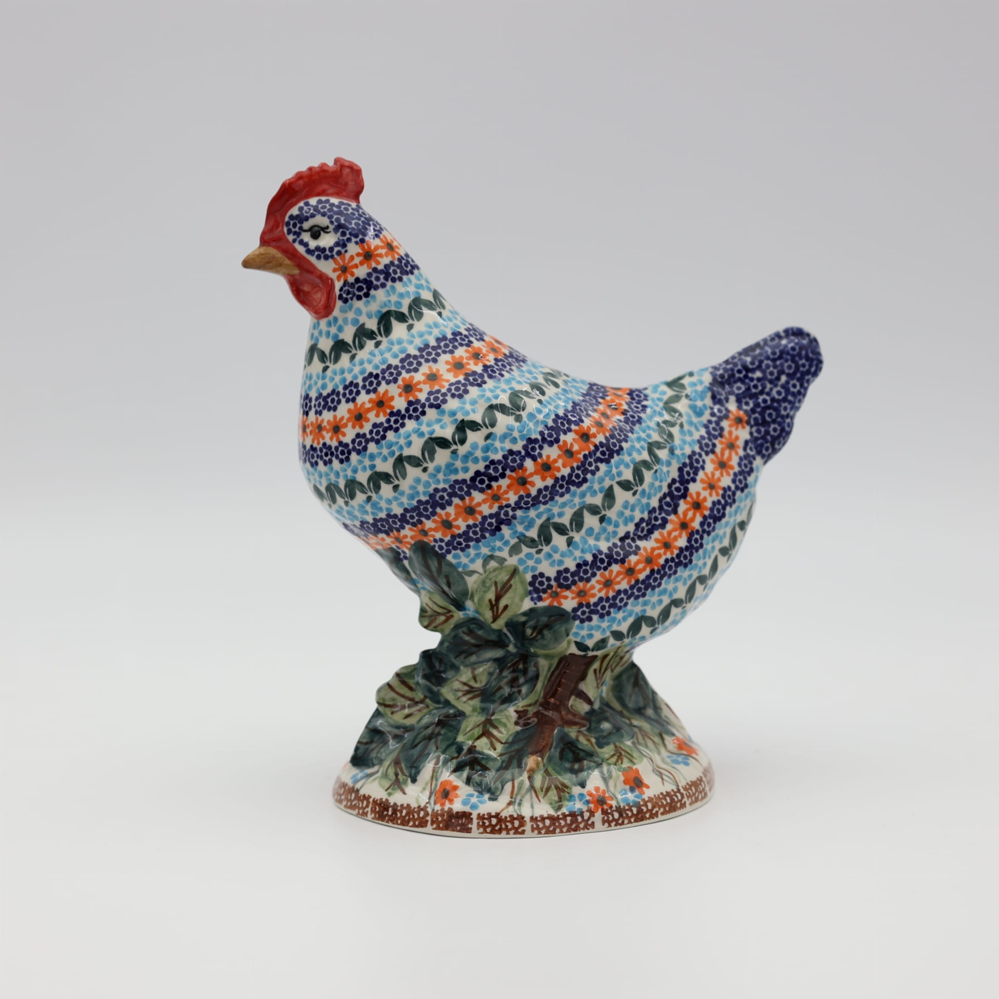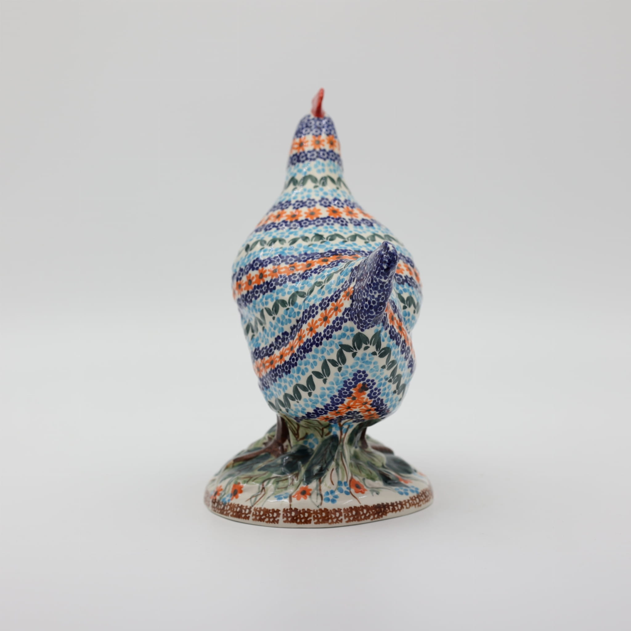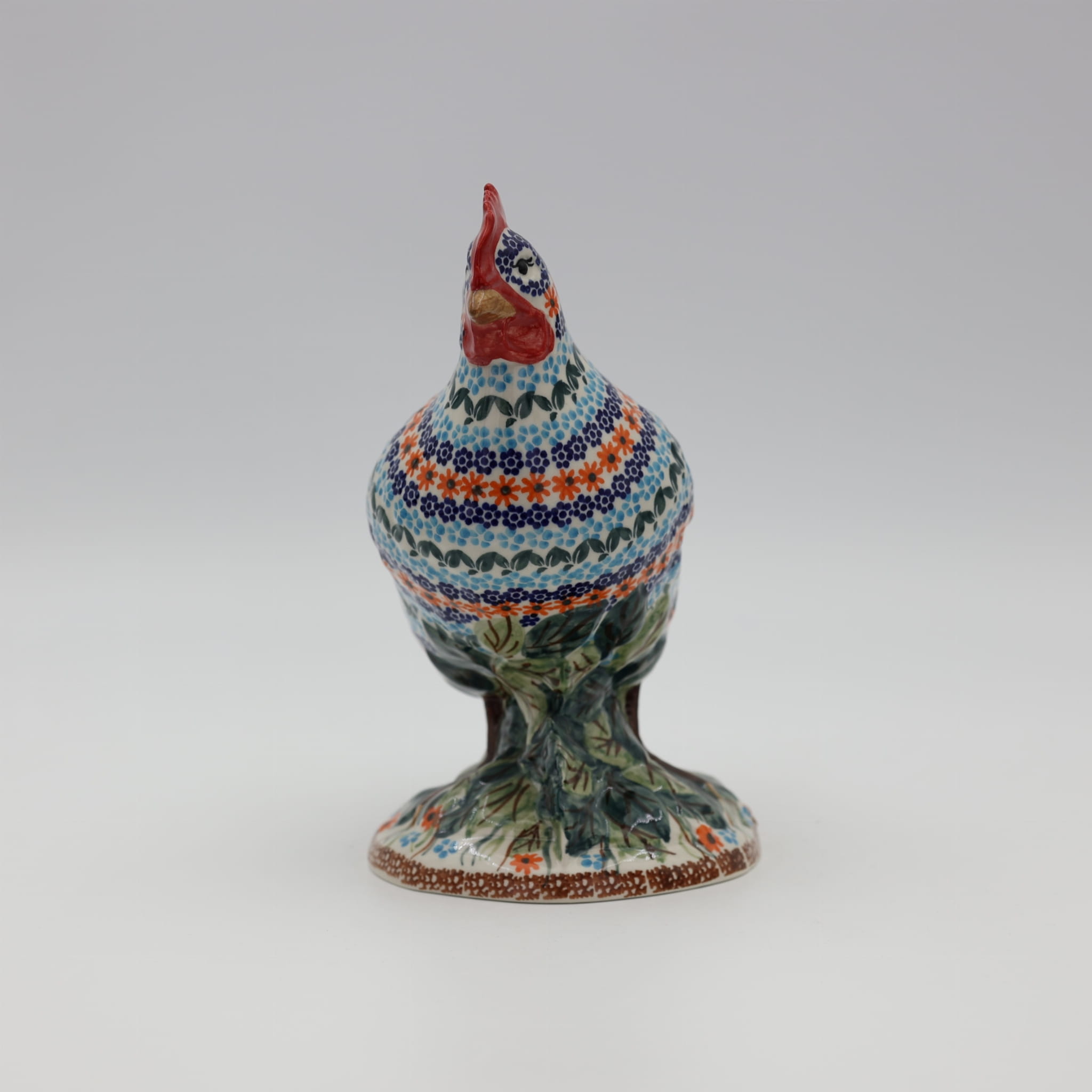 Ożyw swój dom i ogród wyjątkową kurą ceramiczną z Bolesławca, zdobioną tradycyjną metodą stempelkową. Każda figurka to unikalne dzieło sztuki, ręcznie malowane przez utalentowanych artystów, którzy tworzą bogate, kolorowe wzory inspirowane naturą. Nasza kura zachwyca detalami – pełna wiosennych kwiatów, barwnych akcentów i wielkanocnych zdobień, stanie się niepowtarzalnym elementem Twojej świątecznej aranżacji.