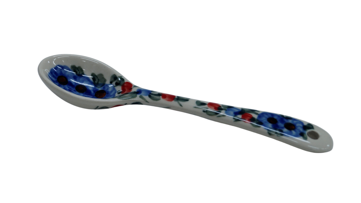 Łyżka ceramiczna deserowa mała, to jeden z podstawowych elementów wyposażenia kuchni, ręcznie malowana w unikatowe dekoracje kwiatowe i stempelkowe, wyprodukowana w bolesławieckiej manufakturze ceramiki artystycznej.