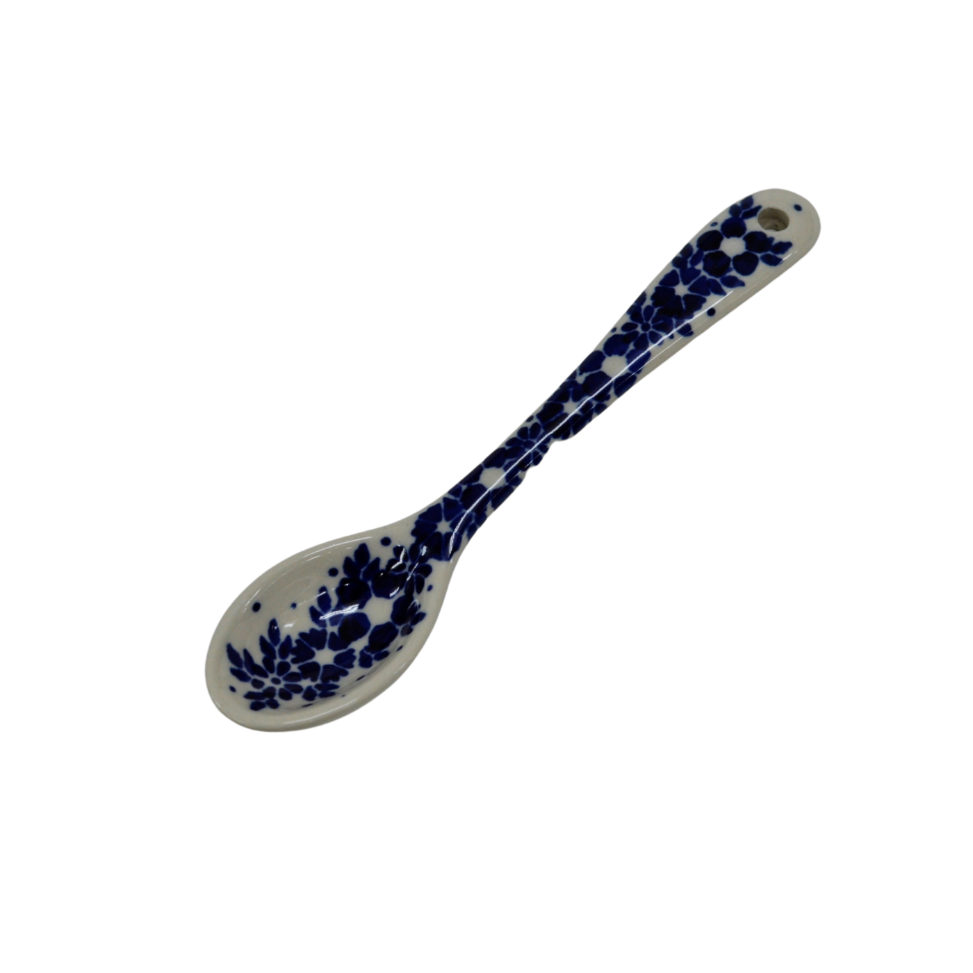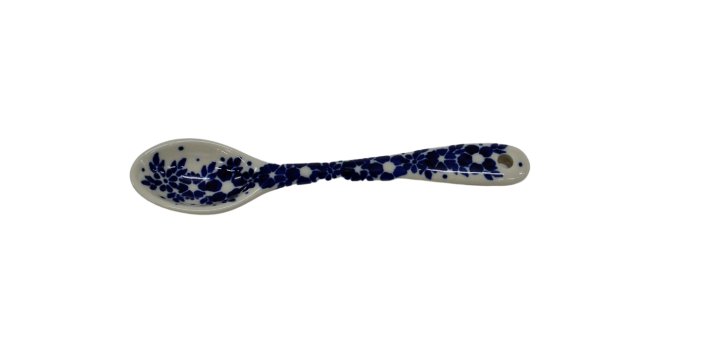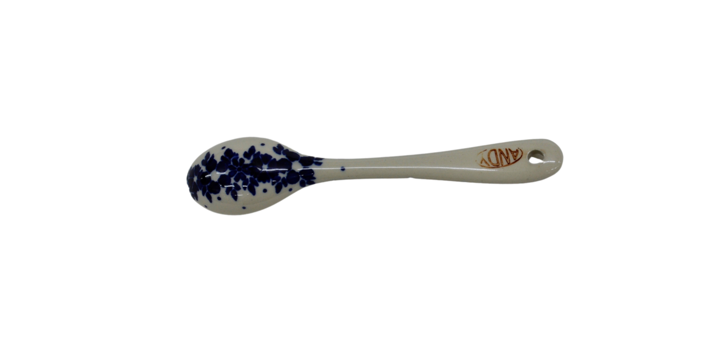 Łyżka ceramiczna deserowa mała, to jeden z podstawowych elementów wyposażenia kuchni, ręcznie malowana w unikatowe dekoracje kwiatowe i stempelkowe, wyprodukowana w bolesławieckiej manufakturze ceramiki artystycznej.