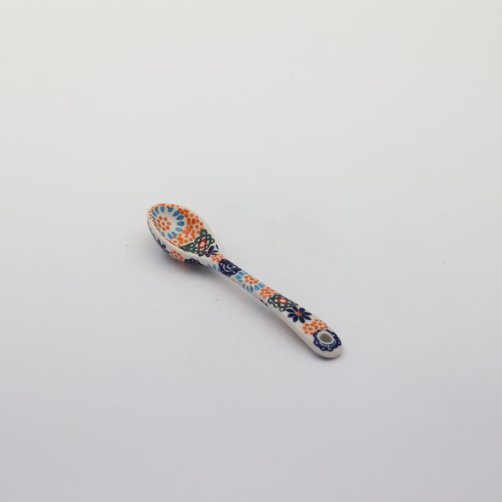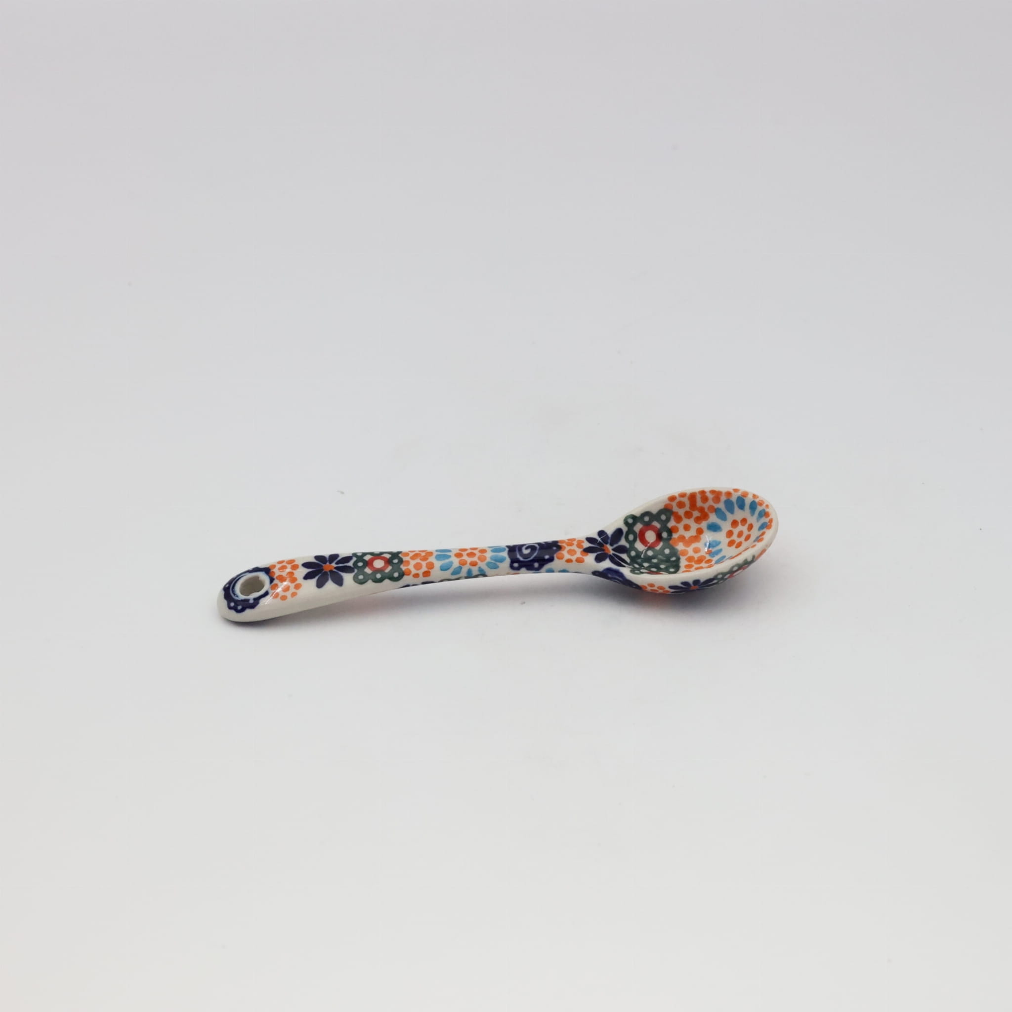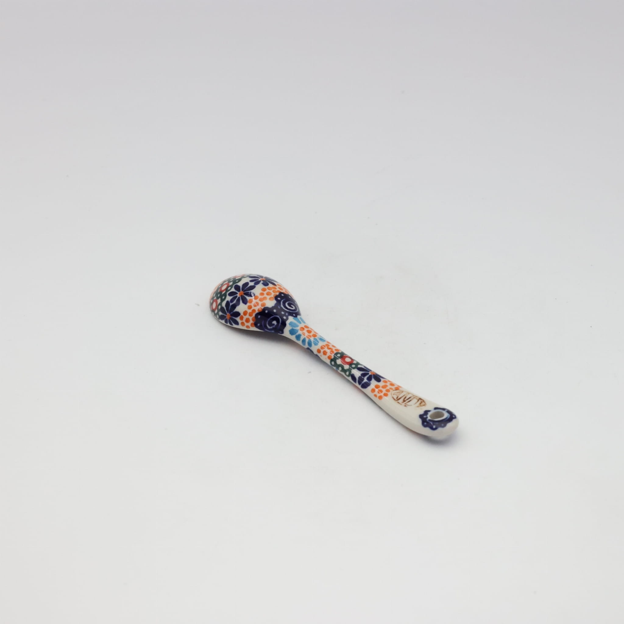 Łyżka ceramiczna deserowa mała, to jeden z podstawowych elementów wyposażenia kuchni, ręcznie malowana w unikatowe dekoracje kwiatowe i stempelkowe, wyprodukowana w bolesławieckiej manufakturze ceramiki artystycznej.