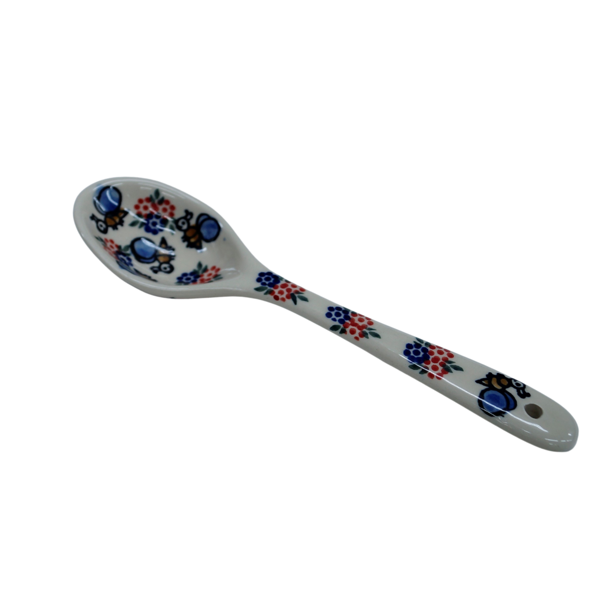 Łyżka ceramiczna duża, to jeden z podstawowych elementów wyposażenia kuchni, ręcznie malowana w unikatowe dekoracje kwiatowe i stempelkowe, wyprodukowana w bolesławieckiej manufakturze ceramiki artystycznej.