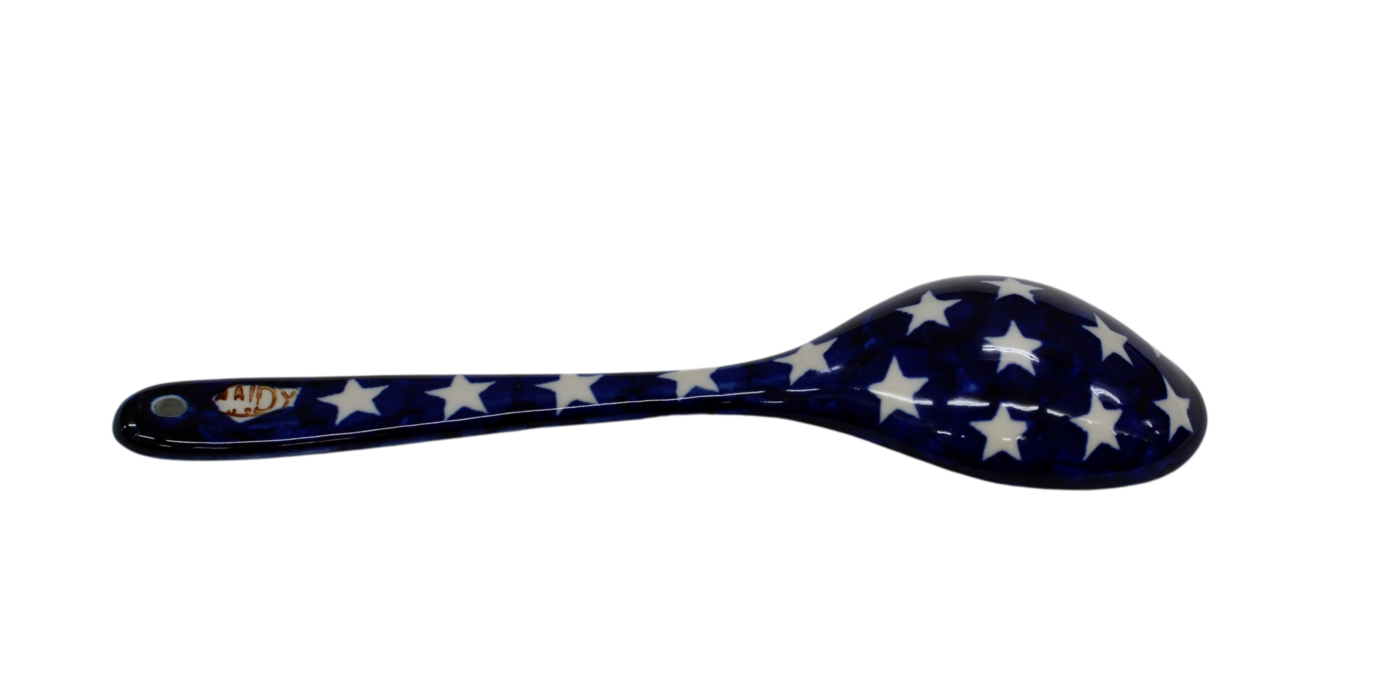 Łyżka ceramiczna duża, to jeden z podstawowych elementów wyposażenia kuchni, ręcznie malowana w unikatowe dekoracje kwiatowe i stempelkowe, wyprodukowana w bolesławieckiej manufakturze ceramiki artystycznej.
