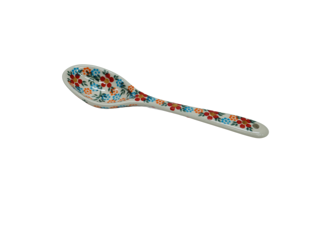 Łyżka ceramiczna duża, to jeden z podstawowych elementów wyposażenia kuchni, ręcznie malowana w unikatowe dekoracje kwiatowe i stempelkowe, wyprodukowana w bolesławieckiej manufakturze ceramiki artystycznej.