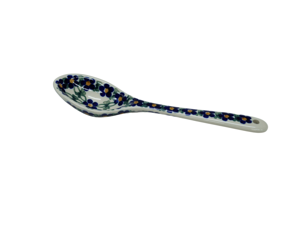 Łyżka ceramiczna duża, to jeden z podstawowych elementów wyposażenia kuchni, ręcznie malowana w unikatowe dekoracje kwiatowe i stempelkowe, wyprodukowana w bolesławieckiej manufakturze ceramiki artystycznej.