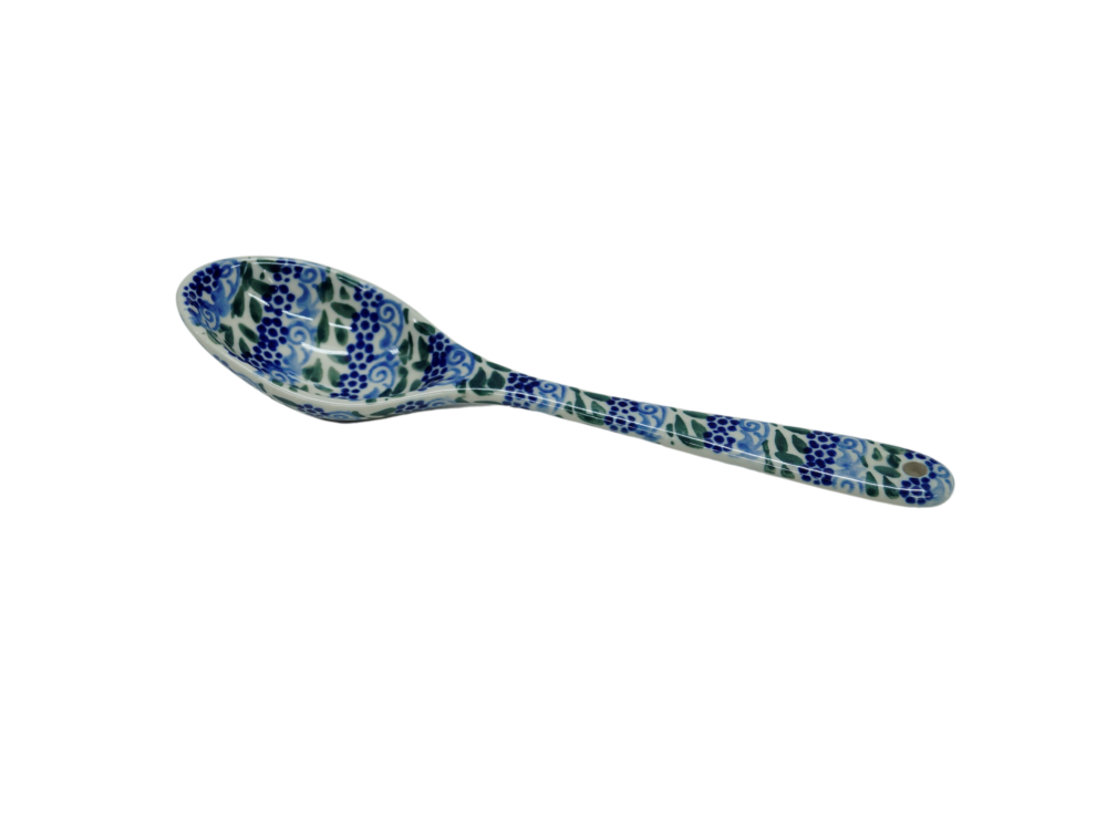 Łyżka ceramiczna duża, to jeden z podstawowych elementów wyposażenia kuchni, ręcznie malowana w unikatowe dekoracje kwiatowe i stempelkowe, wyprodukowana w bolesławieckiej manufakturze ceramiki artystycznej.