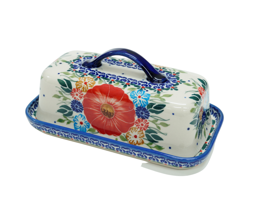 Maselniczka dzięki oryginalnym, ręcznie wykonanym zdobieniom stanie się wspaniałą ozdobą Twojej jadalni czy kuchni, a do tego jest bardzo funkcjonalna.